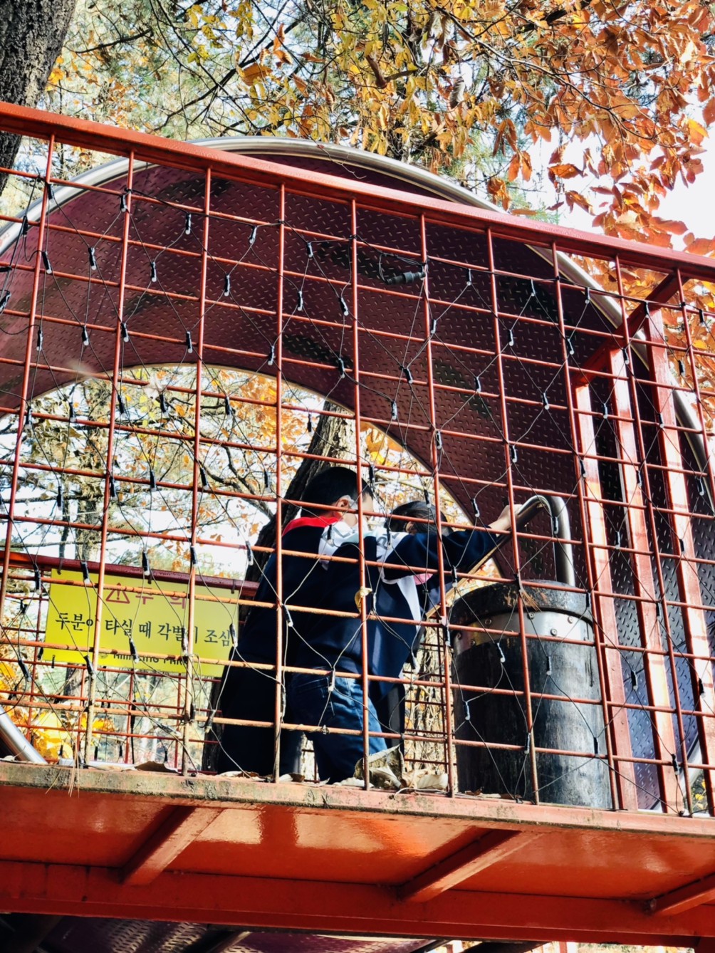 나무와 나무 사이로 얼기설기 연결된, 높고 길고 좁은 그물길이라고 보면 된다. 중간중간 지는 못 간다며 줄을 부여잡고 목놓아 우는 아이들이 보인다. 나 역시 건너는 내내… 이거 진짜 괜찮나 의심스러웠지만, 뭐… 도착해보니 괜찮은 듯싶다. 하지만 울 신랑이랑 왔다면 신랑은 절대로 못 올라가게 했을 듯…
