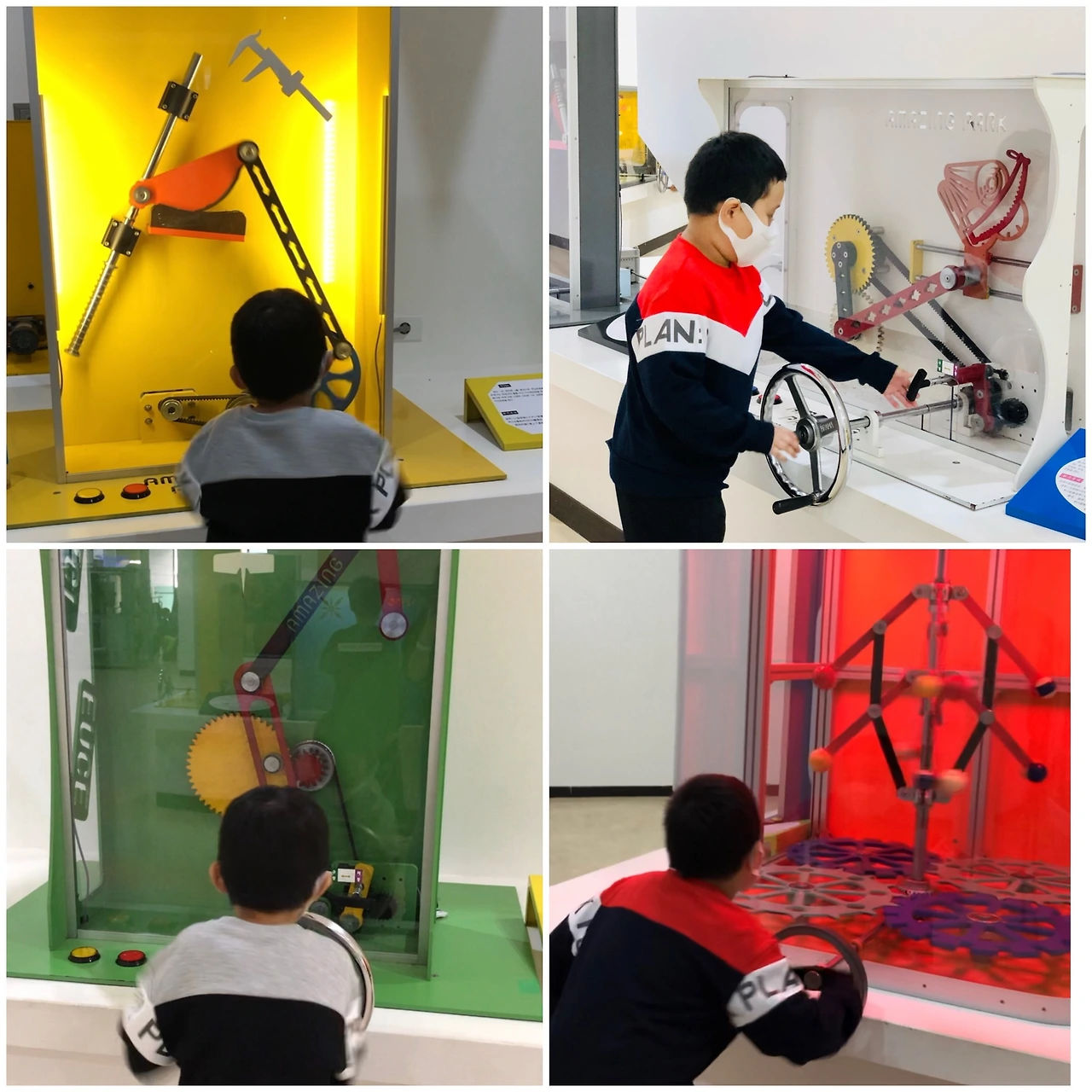 저런 기어, 피스톤 같은 온갖 기계들이 1층부터 3층까지 꽉꽉 들어차 있다. 아이들더러 저것들을 직접 돌리면서 기계 동작의 원리를 배우라는 거 같은데… 녀석들은 기계의 원리고 나발이고, 그저 노동을 할 뿐이었다. 심지어는 딱 봐도 이백 개가 넘어 보이는 저 기계들을 하나도 빠짐없이 모조리 돌렸다. 와우!