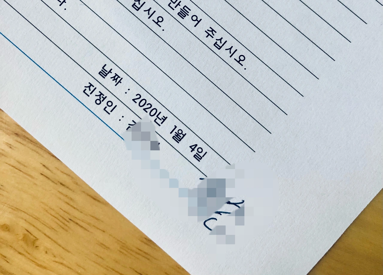 날짜와 진정인 이름 그리고 본인 싸인이나 도장이 들어가면 됩니다.