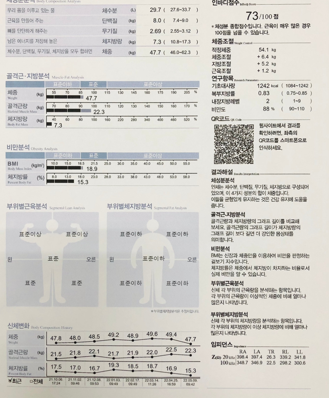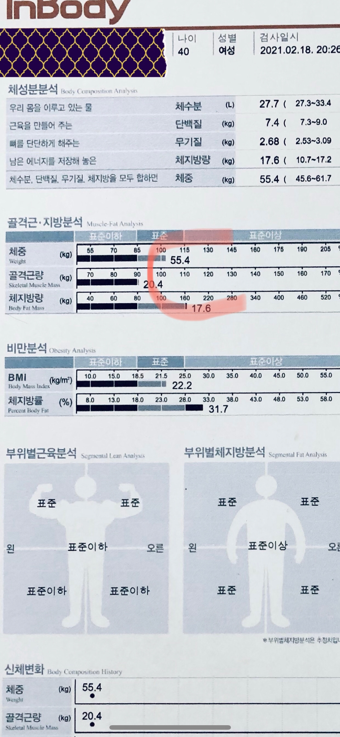 팔다리 체지방률은 표준 이하가 뜨면서