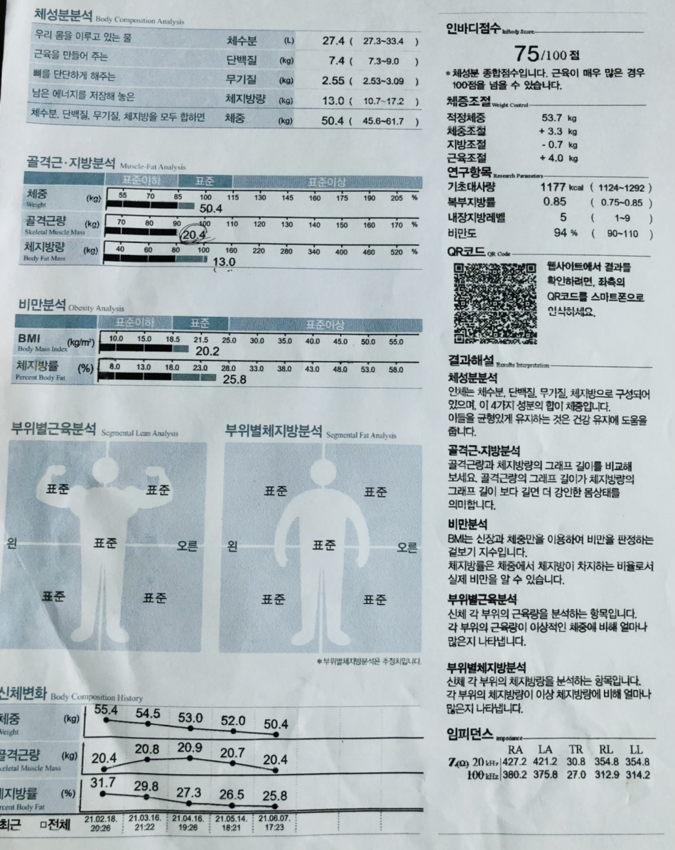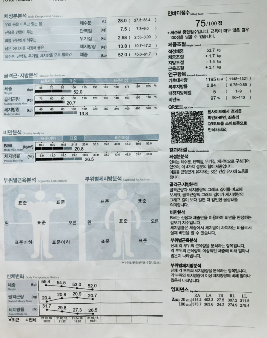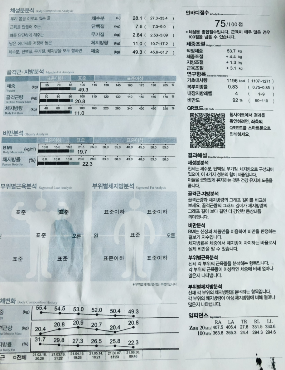 지방 多, 근육 無, 전형적인 C형 인바디. 하하.