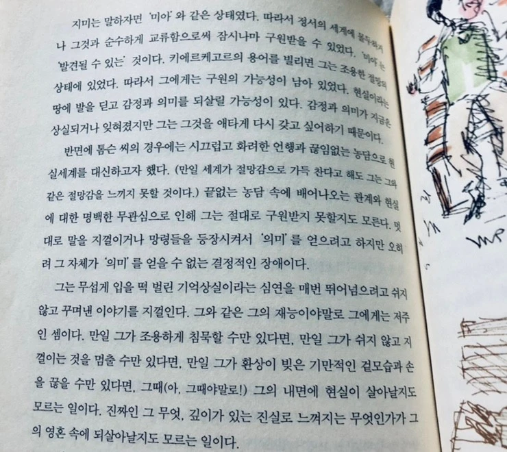 시간이 지나 (약물도 끊고) 후각도 정상으로 돌아왔지만 남자는 그 시절을 “선명하고 생기 있고 자족적거 충만한 그런 세상”(p.298)이라고 회상한다.