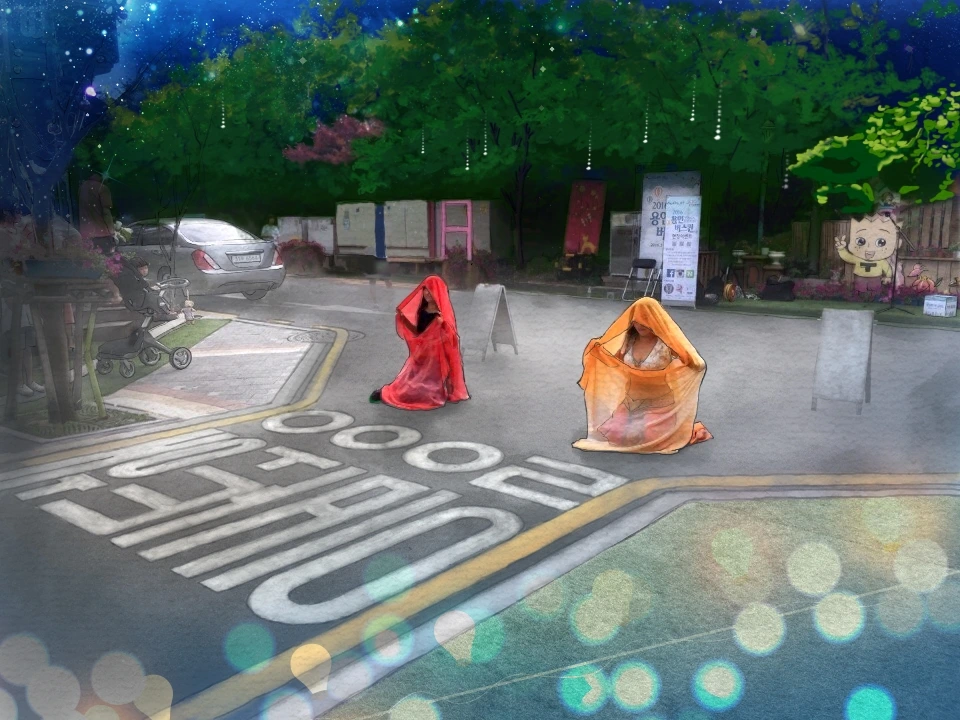 일단 모두 돗자리를 챙겨 온다. 왜냐하면 지금부터 3 시간을 하염없이 앉아있어야 하니까. 그리고 헤어롤로 머리를 말아 올린다. 헤어디자이너가 꿈은 친구는 내 정수리에 은펄을 뿌려준다. 친구가 뭘 뿌려대니 너도나도 다 뿌려달라고 한다. 그래서 우리 팀 전원의 정수리에 은펄이 뿌려졌다. 그리고 화장을 시작한다. 우리 팀 전원의 아이섀도를 합치면 50개쯤. 립스틱을 합치면 30개쯤. 우리는 이것저것 닥치는 대로 발라본다. 시간도 많으니 고민할 것도 없다. 그냥 손에 잡히는 대로 처바른다. 바르면 바를수록 우리 아름다운 선생님은 “더 두껍게, 더 진하게”를 외치신다. 어디서부터 어디까지가 내 눈인지 가늠할 수 없는 상태가 되면 눈화장 완성이다. 그러면 낙타 속눈썹을 붙인다. 어차피 내 눈은 아이라인 덮밥이 되어있으므로 아무 데나 대충 붙여도 된다. 자, 이제 뜨기 힘든 눈이 되었다. 이제 볼터치와 펄 작업을....