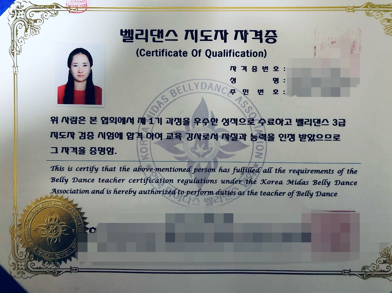 자격증의 내용인즉슨, 이제 너는 누군가에게 벨리댄스를 가르쳐도 그 누구도 토를 달 수 없다. 뭐 이런 내용이다. ‘우수한 성적으로’ 수료했다는 건 사실이 아니고. 하지만 안타깝게도 당시에는 누굴 가르칠 기회가 없었다. 이걸 받고 얼마 후 뱃속에 아기 천사가 생겼기 때문이다. 벨리댄스는 산전 운동이 아니라 산후 운동 쪽이다. 왜 산후 운동인고 하면.... 이건 또 19금으로 넘어가니까 생략한다.