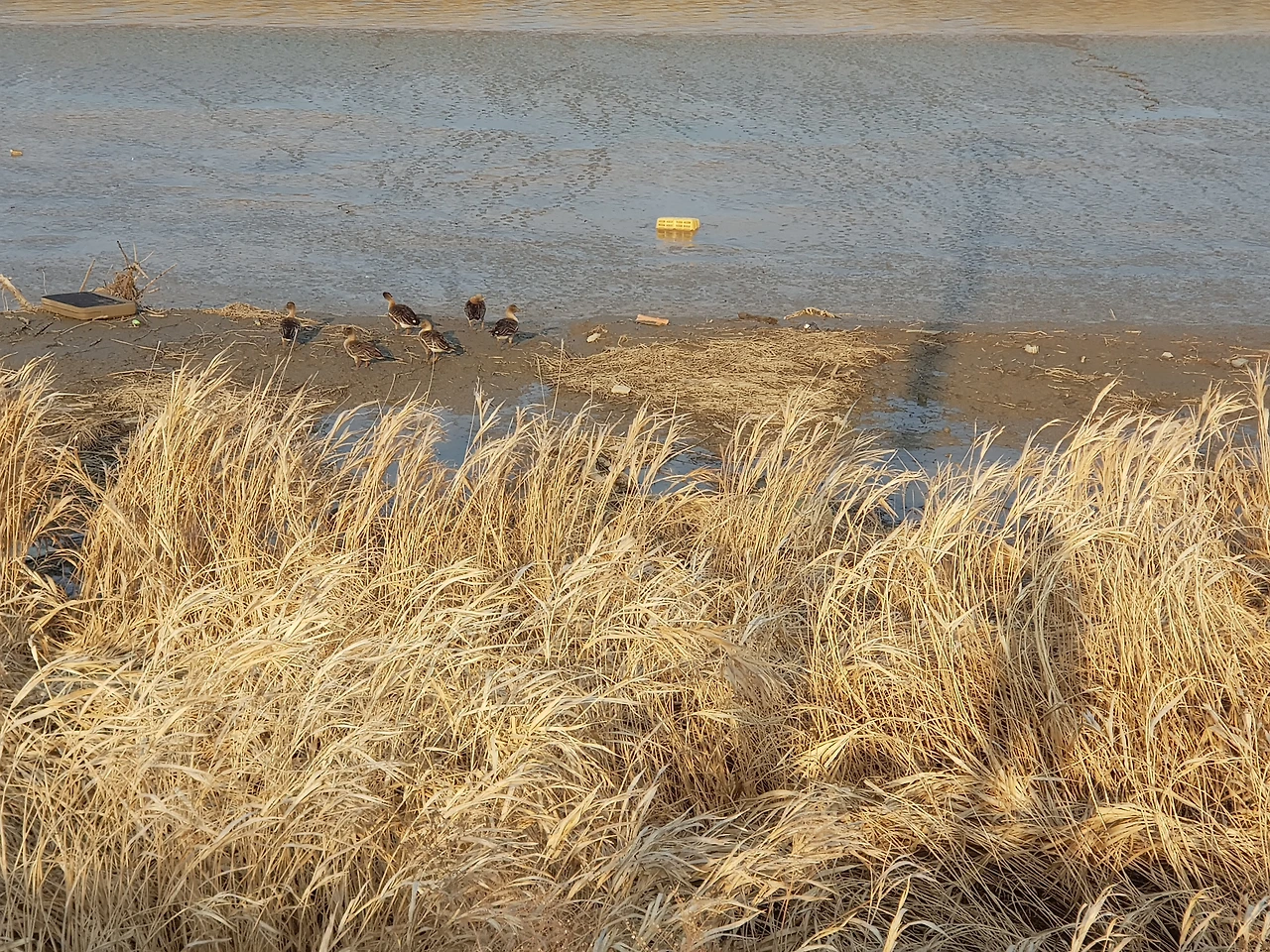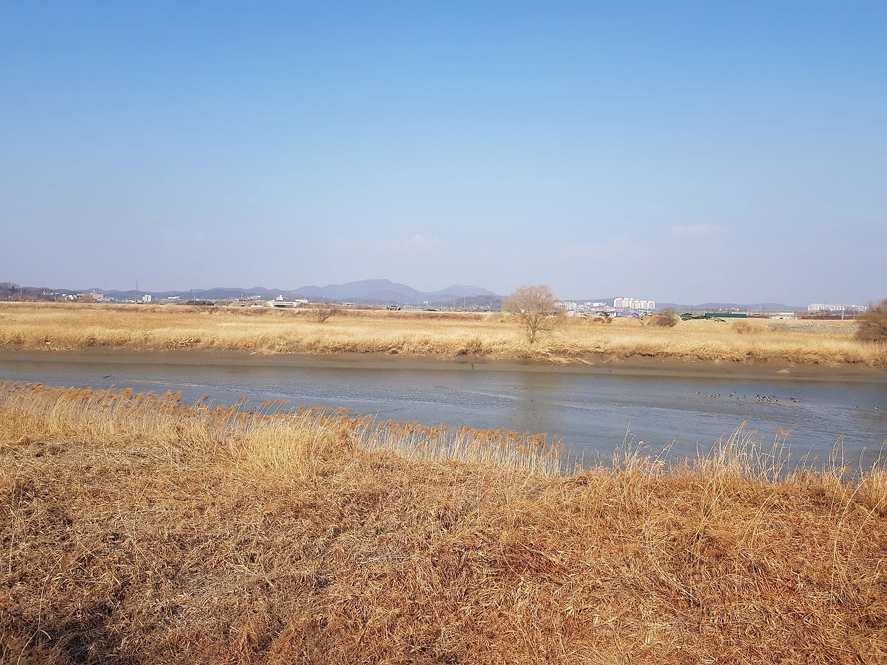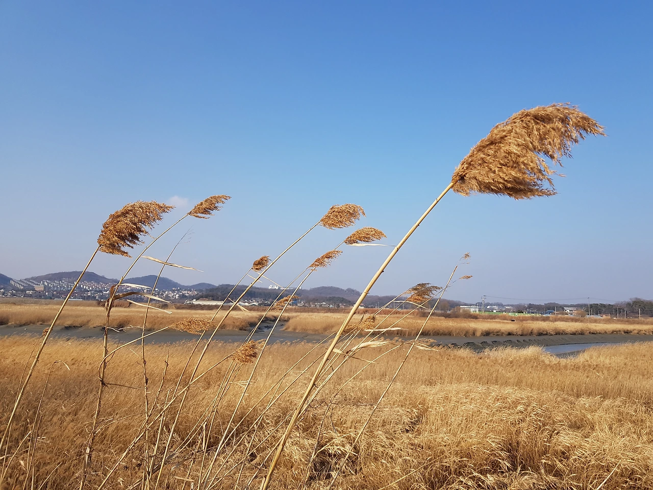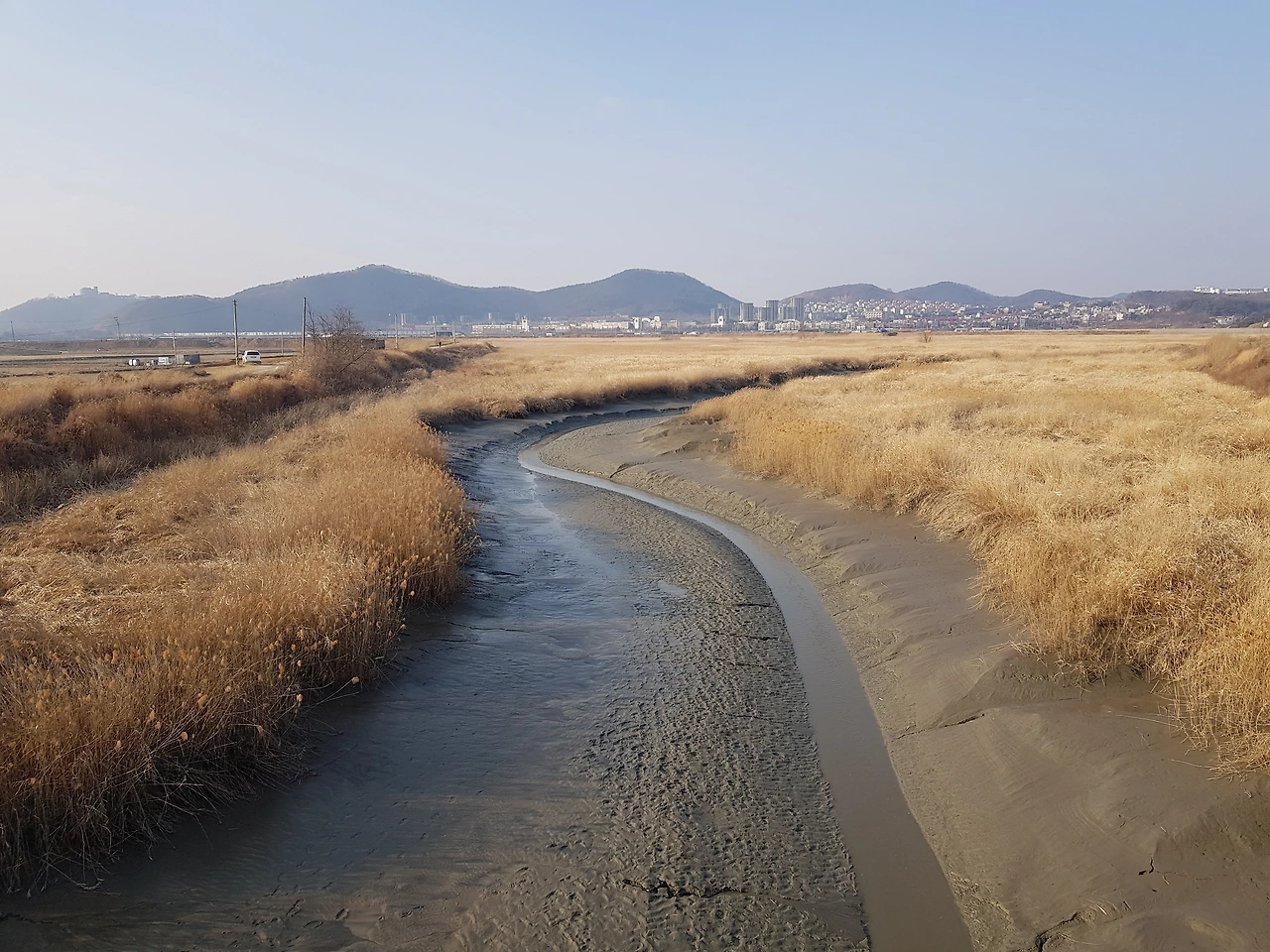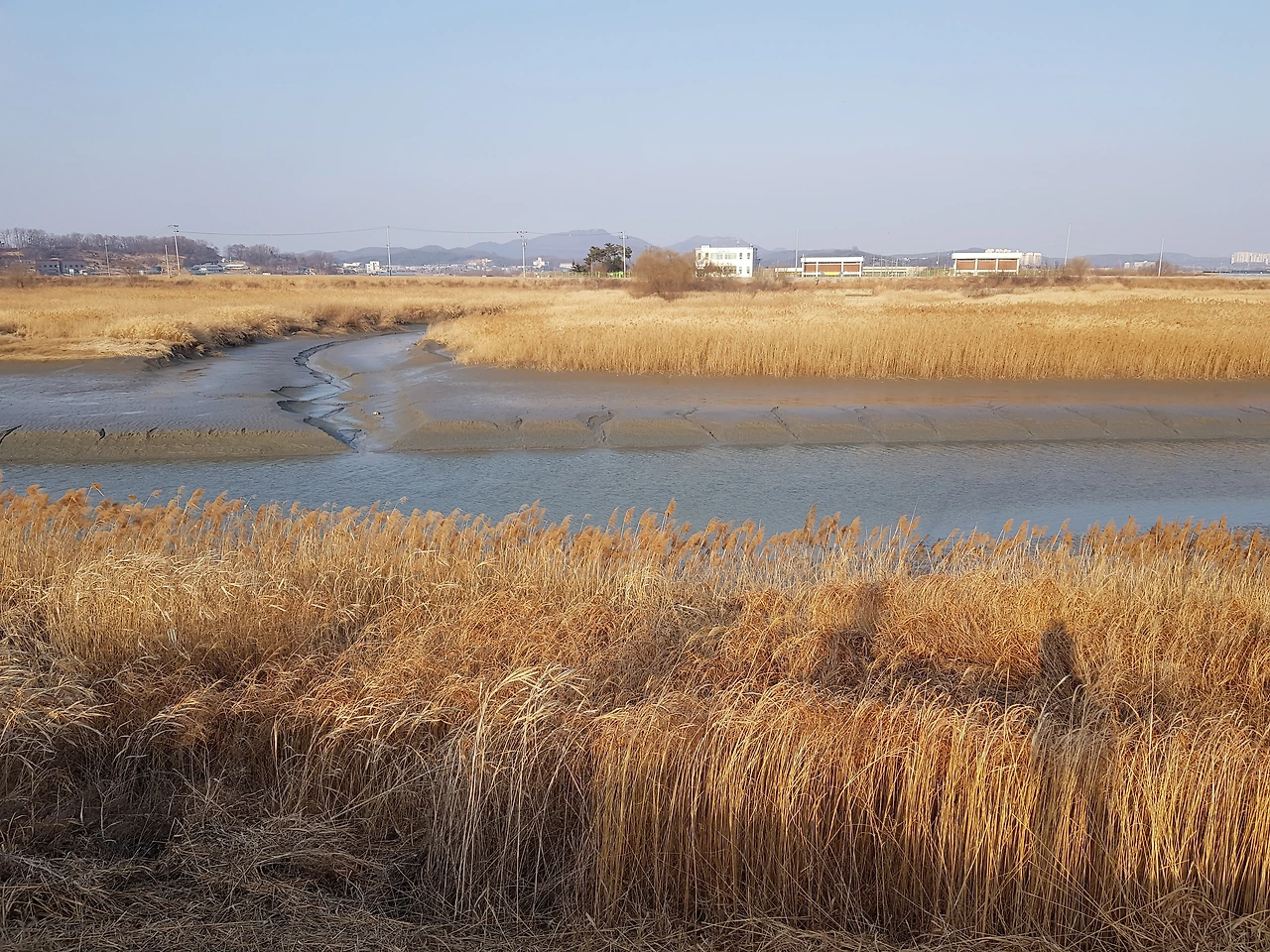 오늘은 바람이 세차게 불었다. 친구에게서 막 전화가 왔는데 친구는 불암산에 봄이 얼마나 왔는지 보러 간다고 했다. 파주는 서울보다 더 멀리에 봄이 있겠지만 어느 곳이든 3월은 땅의 부드러움을 느끼기에 부족함이 없는 달이다. 푹푹 스러지는 갈대가 그렇게 말해준다. 갈대는 뻘과 맞닿아 있다. 아직 이삭을 가지고 있어 가을 느낌이 나지만 길 쪽에 가까이 있는 갈대는 헝클어지고 이삭이 거의 없다. 갈대는 바람의 방향을 말해주고 햇빛의 세기를 알려 준다. 고라니의 따스한 보금자리가 되고, 작은 새들의 먹이가 되고 들쥐들의 서식처가 된다. 바람에 서걱거리는 갈대숲을 보며 느릿느릿 먹이를 찾아 걷는 기러기들을 보며 나도 그 보폭을 따라 걷는다. 공릉천 길은 걸림돌이 없으니 한눈팔고 걷기 딱 좋은 길이다. 뻘은 골판지 같기도 하고, 사구처럼 보이기도 한다. 초콜릿을 켜켜이 쌓아 올린 초콜릿 무스처럼 보이기도 한다. 화려한 것이 너무 많아 정신을 차리지 못할 만큼 근사한 풍경에선 막상 무엇을 보아야 할지 모르는 경우도 많다. 반면 담백한 풍경이 때론 더 풍부한 감상과 상상력을 낳기도 한다. 그리하여 밋밋한 풍경 속을 걷다 보면 내가 현재 느끼는 감각과 나에게 집중할 기회는 더 많이 생기는 것이다.