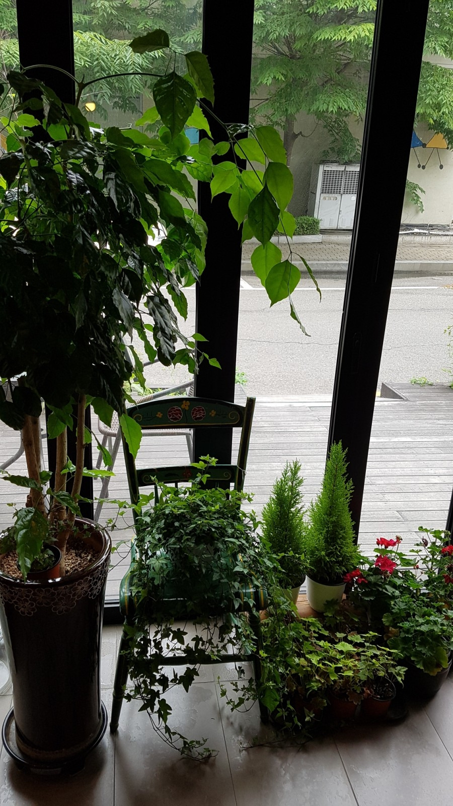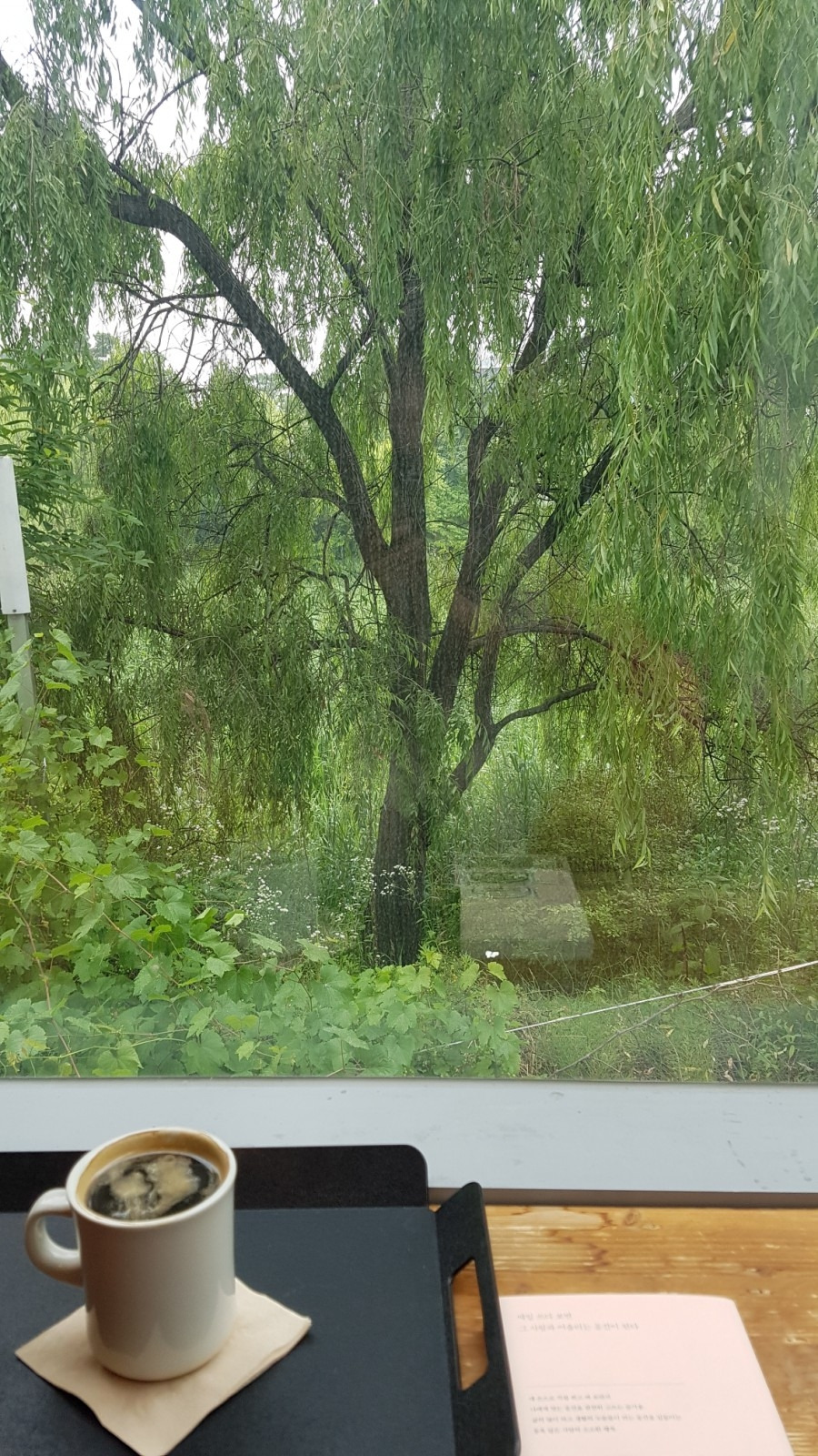 2019년 이전에 자주 찾았던 북카페, 출판단지에 있는 블루박스는 클래식 음악이 흐르는 조용한 북카페다. 헌책에서 나는 냄새와 있어야 할 곳에 소담하게 놓여 있는 화초들 그리고 규격화되지 않은 책꽂이와 공간의 짜임새가 마음에 든다. 무엇보다 카페 안쪽으로 들어가 몇 계단 오르면 편안한 소파 자리가 있다. 그 창 밖엔 키 큰 버드나무가 있다.
