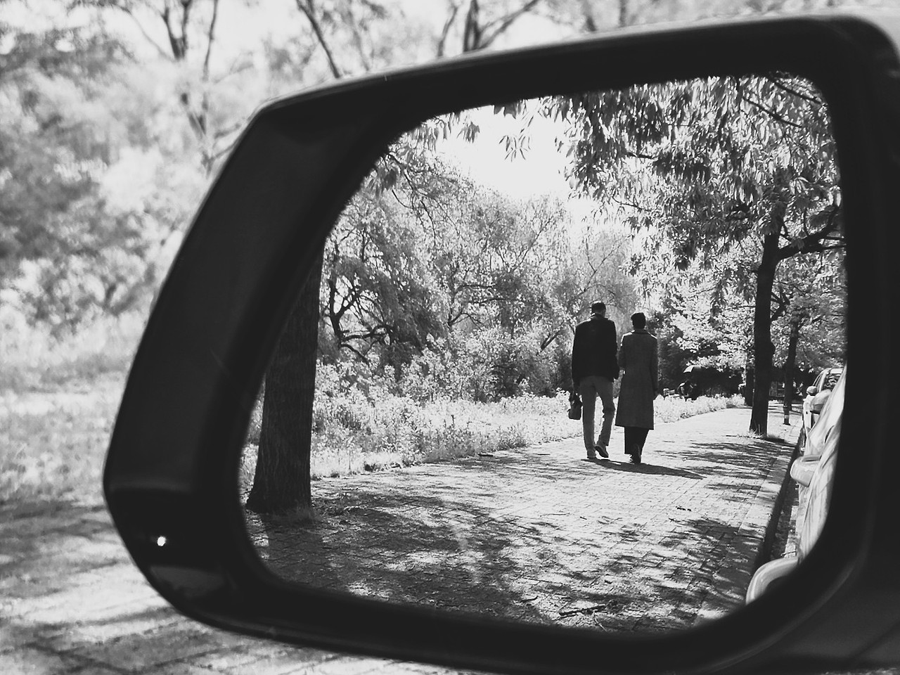 푸르른 4월, 길가에 차를 세우는데 사이드미러 너머로 걸어가는 두 사람이 보였다.