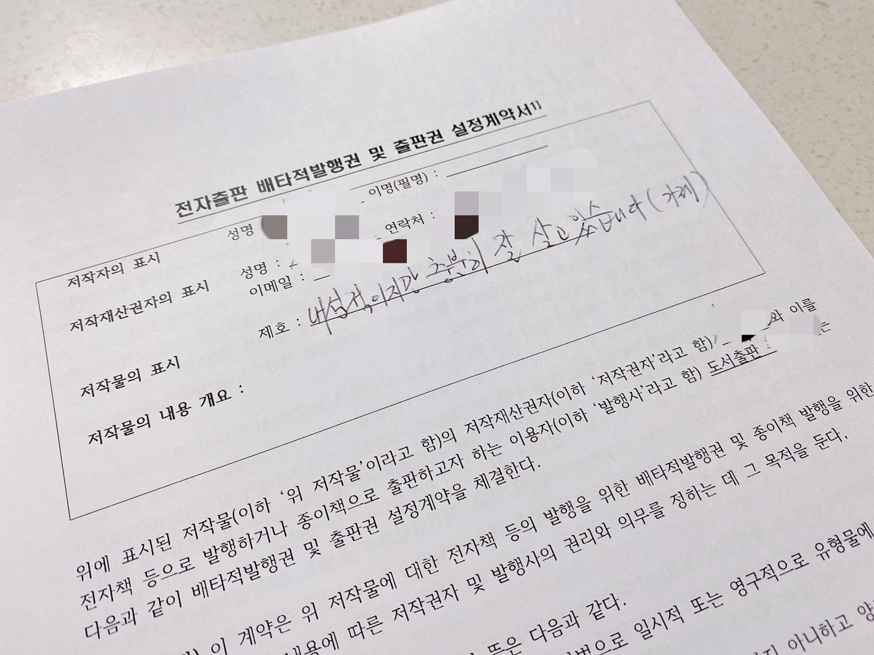 월요일에 한 출판사와 출간 계약하고 왔어요!