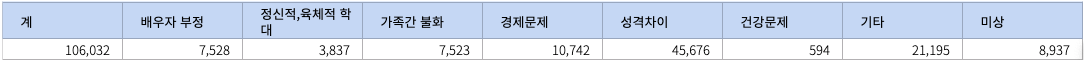 <이혼 사유별 이혼(KOSIS, 2017)>