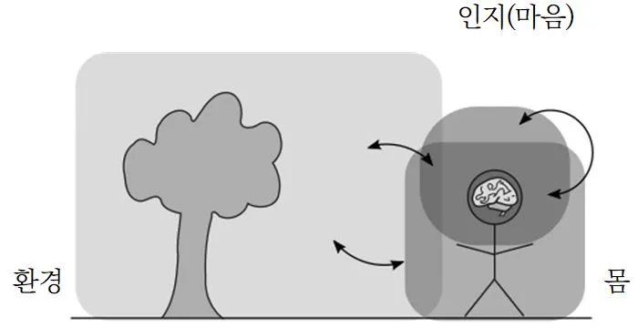 이런 데카르트 모형에서는 몸, 세계, 인지(마음), 행동은 서로 독립적인 것으로 이해된다. 이에 반해, 신체화 모형에서는 인지를 설명할 때 행위자의 신체적 경험을 도입하려고 한다.