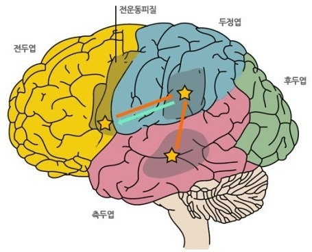 다음으로, 두정엽은 두개골 상부, 정수리 근처에 있는 뇌 부위로서, 다음과 같은 다양한 기능에 관여한다.