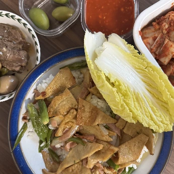 오늘의 메뉴는 어묵볶음 덮밥.