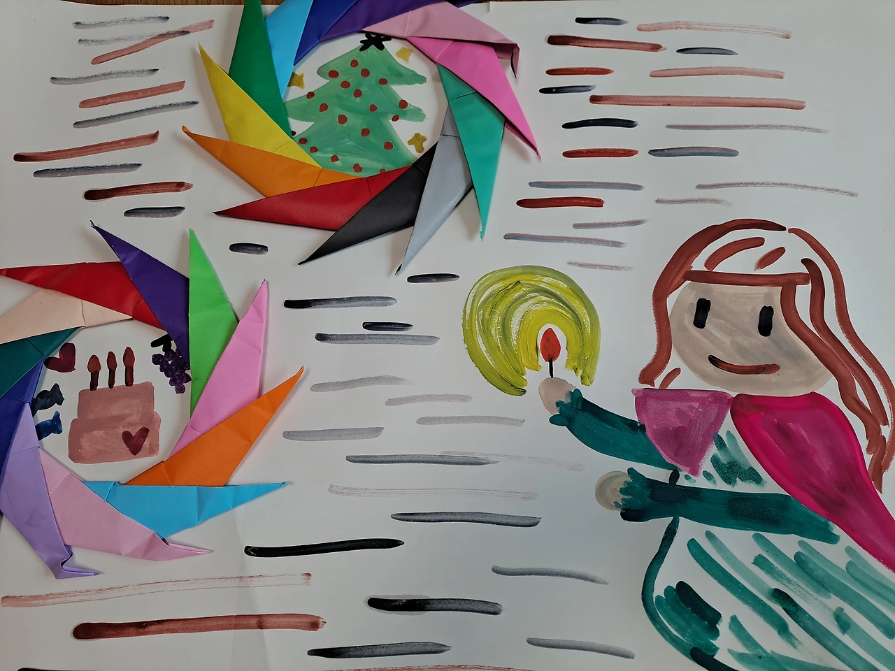 예쁜 트리가 그려졌다. 하트가 박힌 딸기 케이크와