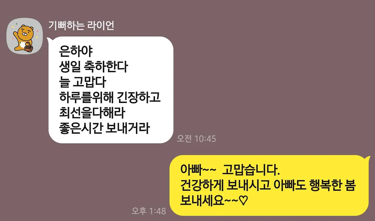 평소 카톡보다는 전화를 더 자주 하시는 아빠께도 톡이 왔는데 자상함을 넘어 뭔가 근엄해 보이시려는 결이 느껴져 나만 알 수 있는 웃음도 났다.