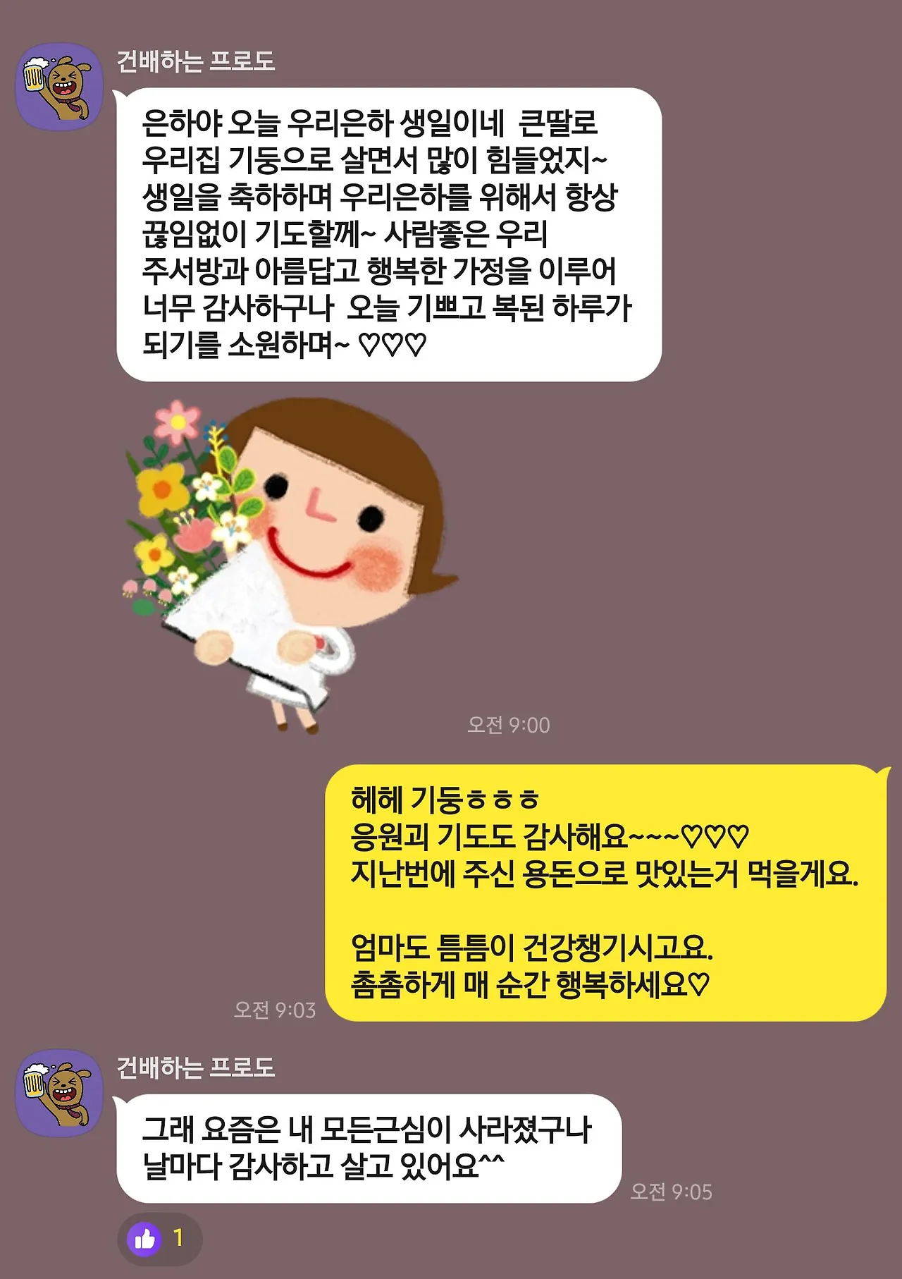 5월은 즐겁고 신이 나는 달이다. 가정의 달이라 기념일이 많지만, 딸 셋 중 둘이 생일이어서 5월 초부터 늘 북적북적 축제였다. 어린이날 하루 전이 생일이라 어린이날까지 연달아 기쁨과 선물이 이어졌던 어린 시절, 부모님은 늘 모든 기념일을 꼼꼼하게 챙겨주셨다. 비록 하루 차이였어도 생일은 생일대로, 어린이날은 어린이날대로 그날에 맞게 진심을 다해주셨다. 첫째 동생의 생일에도 내 선물은 늘 같이 주셨고, 내 생일에도 동생 선물이 같이 있었다. 8년 후, 막내 동생이 내 생일에 태어나 겹 생일이 되면서 5월 첫째 주는 일 년 중 가장 설레고 신나는 주간이다. 어제도 아침부터 카톡으로 축하가 왔다.