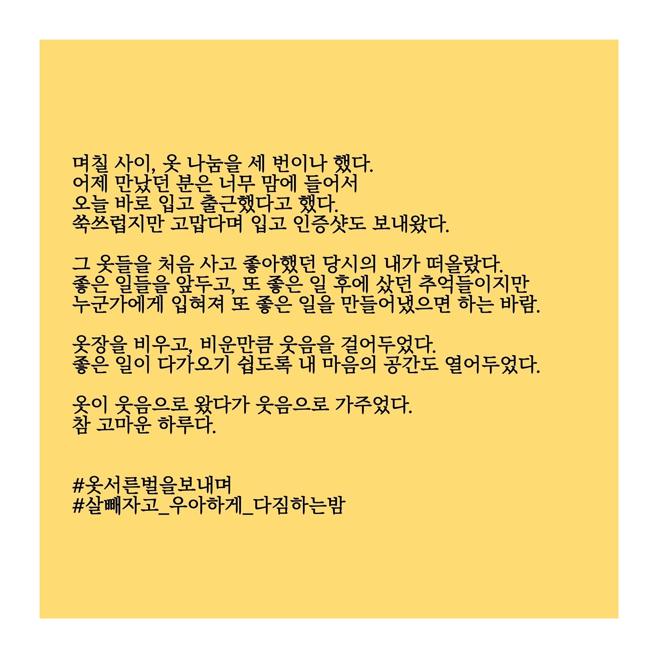 며칠 사이, 옷 나눔을 세 번이나 했다.