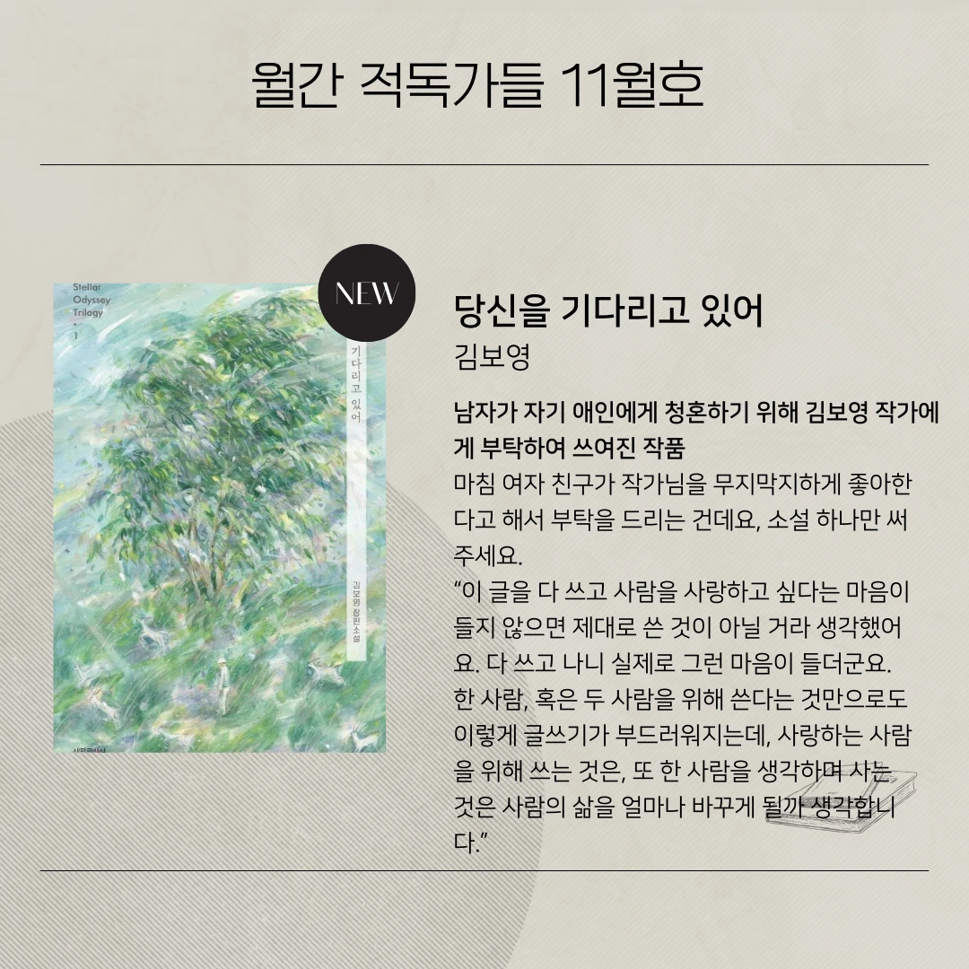 11월의 책은 '당신을 기다리고 있어(김보영)'입니다.