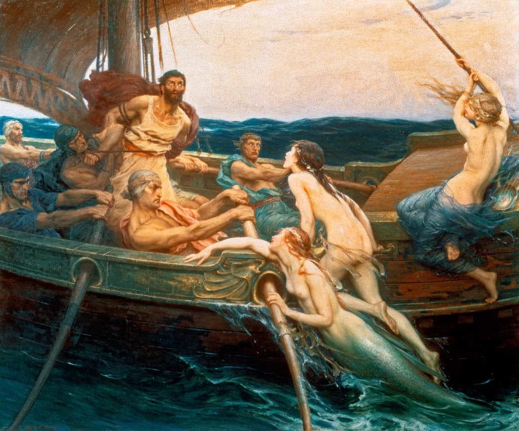 오디세우스는 트로이 전쟁의 승리에 취해 사이렌의 노래를 듣고 싶었습니다. 그는 모든 선원의 귀를 밀랍으로 막고, 자신은 돛대에 묶었습니다. 오디세우스는 아름답고 황홀한 사이렌의 노래를 들었지만, 선원들은 들을 수 없었습니다.