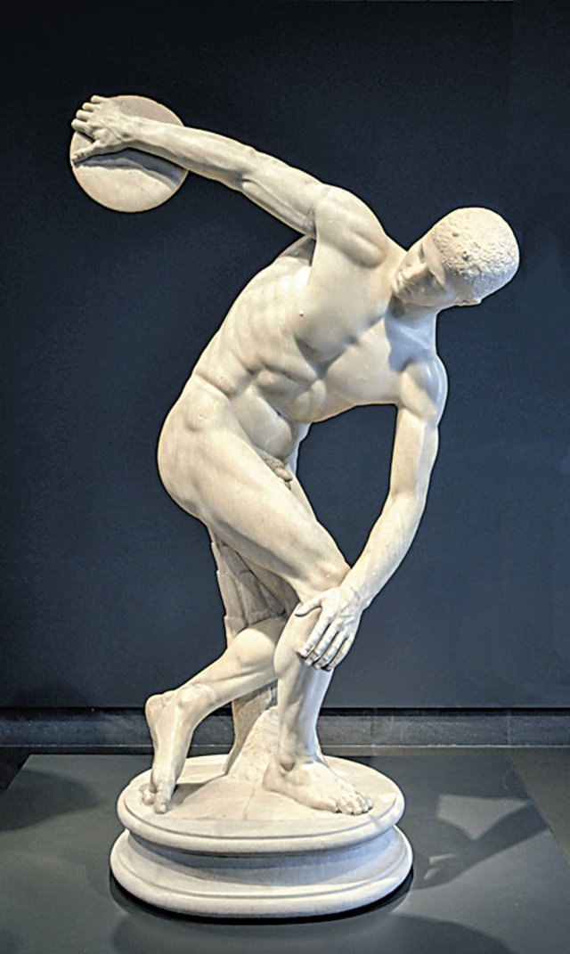 그리스 미술에서는 인간의 신체뿐만 아니라 동작의 자연스러움도 중요하게 여겼습니다. 원반 던지는 남자와 같은 조각은 인간의 역동적인 동작을 포착하며, 그들의 운동과 생동감을 그대로 표현했습니다. 이러한 표현은 이집트 미술에서 찾아볼 수 없는 인간에 대한 새로운 시각을 보여줍니다. 하지만 실제로 이 자세로 원반을 던지는 것은 불가능하다고 합니다. 그렇다면 왜 이런 자세로 원반 던지는 사람을 표현했을까요? 그리스인들은 현세를 중시했던 만큼 인간의 신체를 가장 이상적인 존재로 여겼습니다. 이 멋진 포즈는 신체의 아름다움을 가장 효과적으로 보여줄 수 있다고 생각한 것 같습니다. 자유롭고 개방적인 자세와 근육과 힘줄에서 느껴지는 운동감은 보는 사람들로 하여금 감탄을 자아내게 합니다.