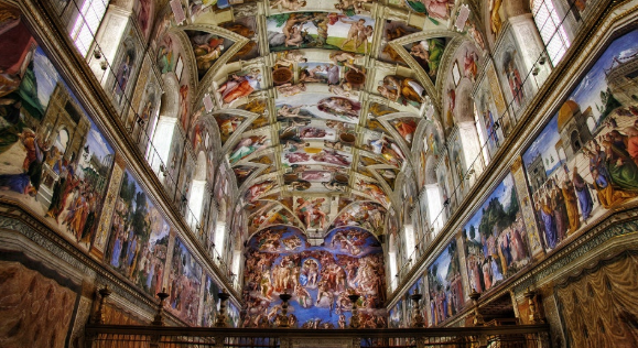 미켈란젤로는 교황 율리우스 2세의 요청으로 1508년부터 시스티나 성당의 천장화를 그리기 시작했습니다. “조각이 아니라 그림이라고요?” 그는 처음에 자신은 조각가라 그림은 못 그린다고 거절하였지만, 교황은 그의 예술적 재능을 신뢰하며 이 거대한 프로젝트를 맡겼습니다. 미켈란젤로는 천장 화를 완성하기까지 약 4년이 걸렸으며, 그는 조수 외에는 아무도 들어오지 못하게 한 후, 혼자서 이 방대한 작업을 수행했습니다. 천장을 그리는 과정은 매우 고된 일이었습니다. 또한, 그는 특수한 비계 구조를 설계하여 천장에 누운 자세로 그림을 그렸습니다. 이러한 자세로 작업하며 목과 허리가 극심한 고통을 겪었다고 전해집니다.