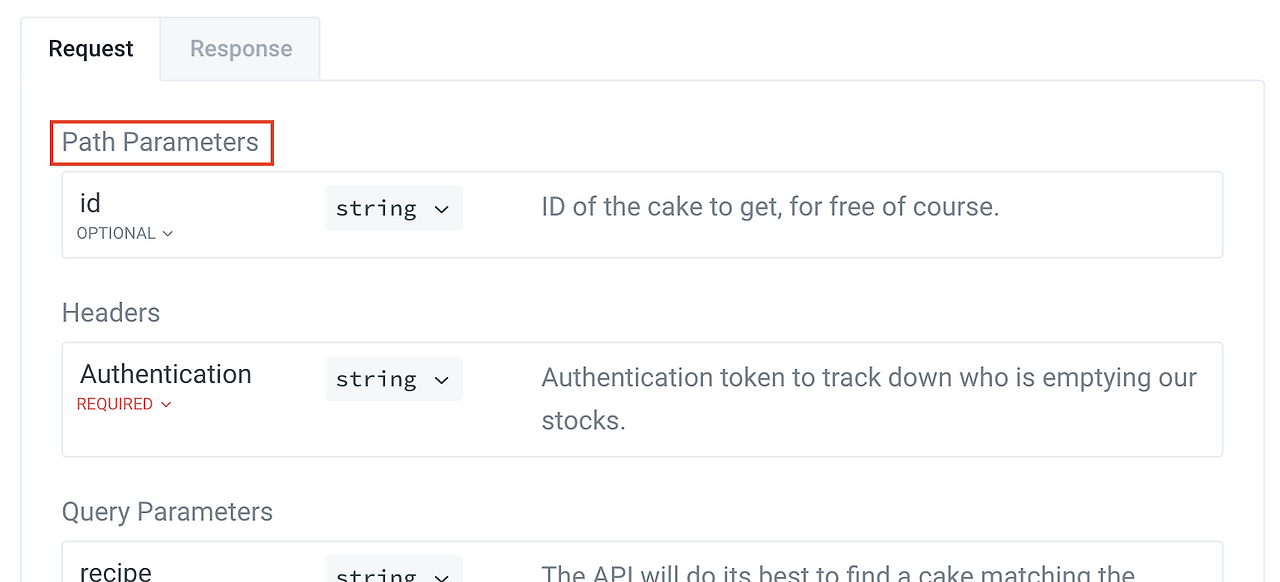 Path Parameters, Headers, Query Parameters들이 적혀있다.