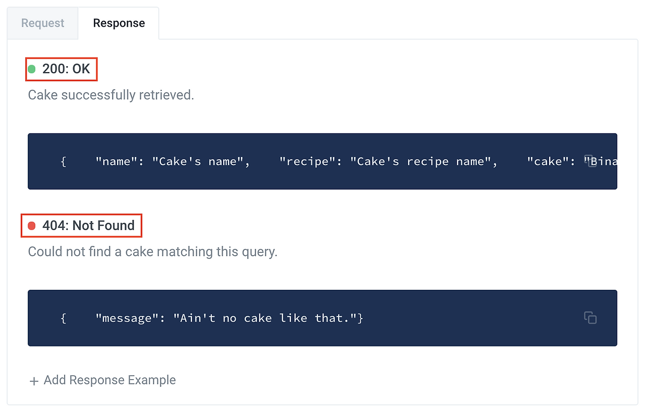 오~ 앞서 배웠던 서버가 응답을 보내는 숫자 코드이다.(3-5 참조) 200대일 경우 아래 코드를 전송하고, 404일 경우 "Ain't no cake like that"(그런 케이크는 없다)라는 메시지를 보내주라고 되어있다.