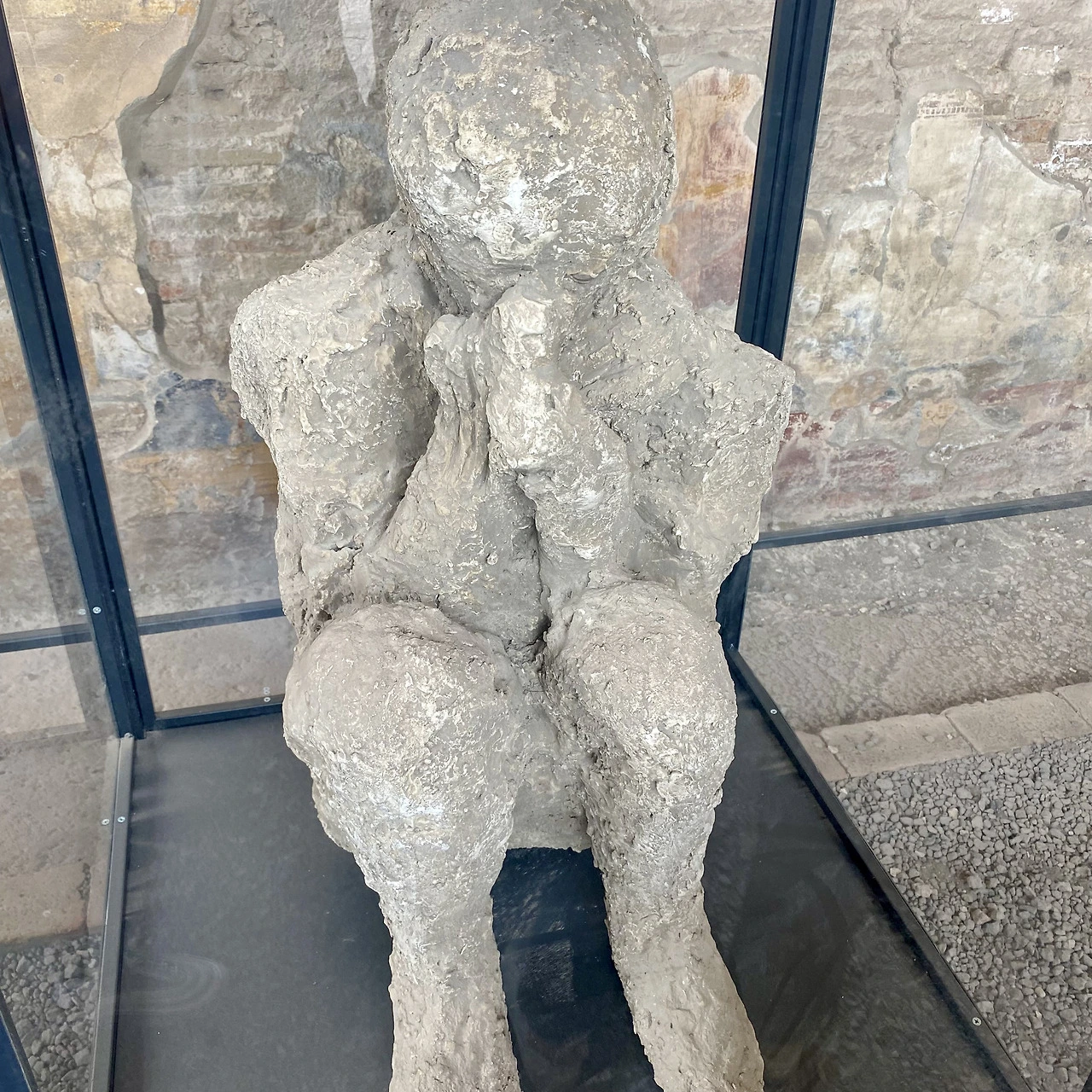 하지만 아무래도 폼페이 유적지의 클라이맥스는 화산재에 덮인 채로 마지막을 맞이했던 사람들의 실제를 본뜬 석고상이었다. 누워서 코를 막고 있는 사람을 보니 가슴이 아팠고, 쪼그려 앉아 기도를 하듯 두 손을 모아 코를 막고 있는 사람의 석상 앞에선 눈물이 나왔다. 실제 사람이 화산재를 덮어쓴 상태 그대로 녹아버려 발굴 당시 빈 공간이 생긴 곳에 석고를 부어서 석상을 만들었다고 하니, 그때의 동작이나 절실한 표정까지 세밀하게 재현되어 있었다.