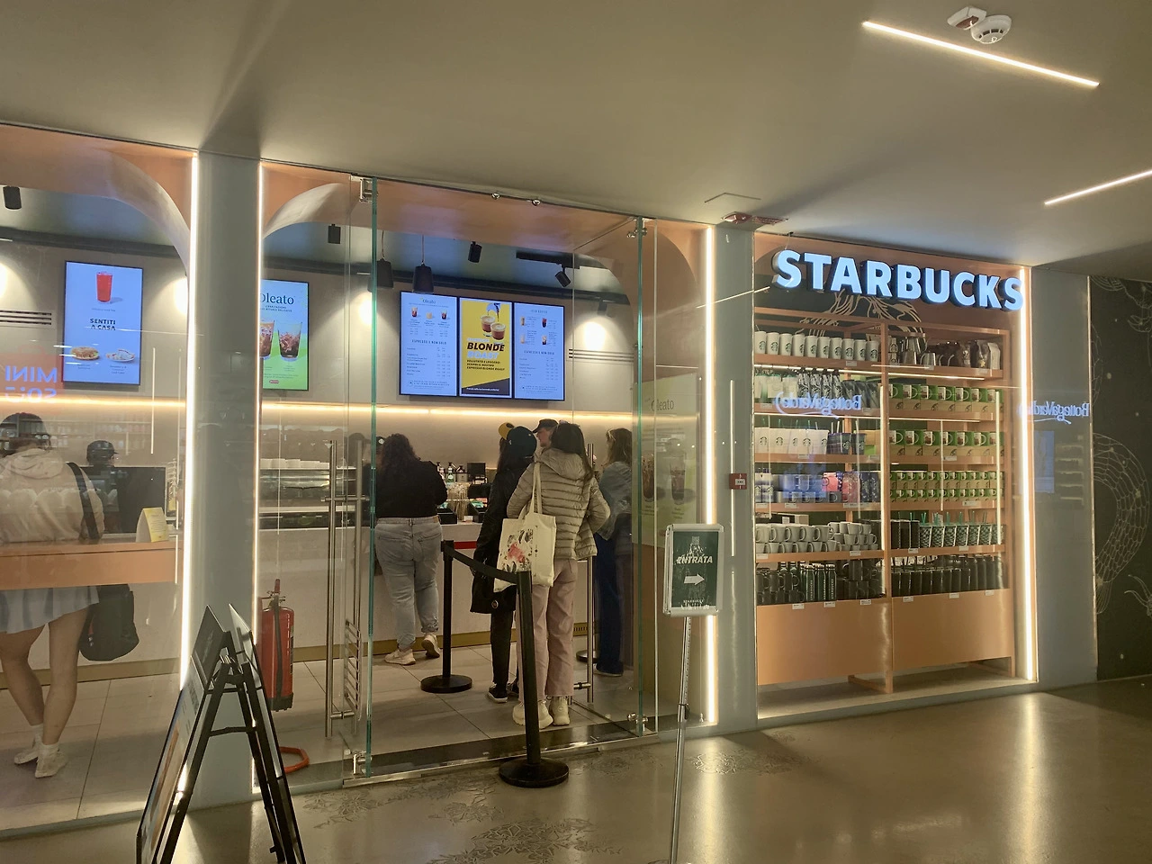두 사람이 다음으로 향한 곳은 산타 마리아 노벨라 기차역 지하 쇼핑센터였다. 가볼까 말까 망설였던 가죽시장을 클리어 한 김에, 역시 고민했던 스타벅스 매장에 들르기 위해서였다. 자국 커피에 대한 자부심이 엄청나서인지 스타벅스 매장을 찾기 힘든 이탈리아에서 우리가 발견한 첫 매장이었기에 더 궁금하기도 했다. 하지만 역시 스타벅스는 그냥 스타벅스였다. 전 세계 어디를 가나 거의 같은 분위기를 즐길 수 있는 것이 장점이지만, 반대로 특별한 점은 별로 없다는 것은 아쉬웠다. 매장 앞 주문 줄에는 관광객들이 상당히 늘어서 있어서 음료는 마시지 않기로 하고, 간단한 기념품으로 스타벅스 이탈리아 에스프레소 잔 하나(8유로)를 샀다. 국가별 도시별 머그컵과 잔 판매는 누가 생각해 냈는지 마케팅의 천재임이 틀림없다는 생각이 들었다.