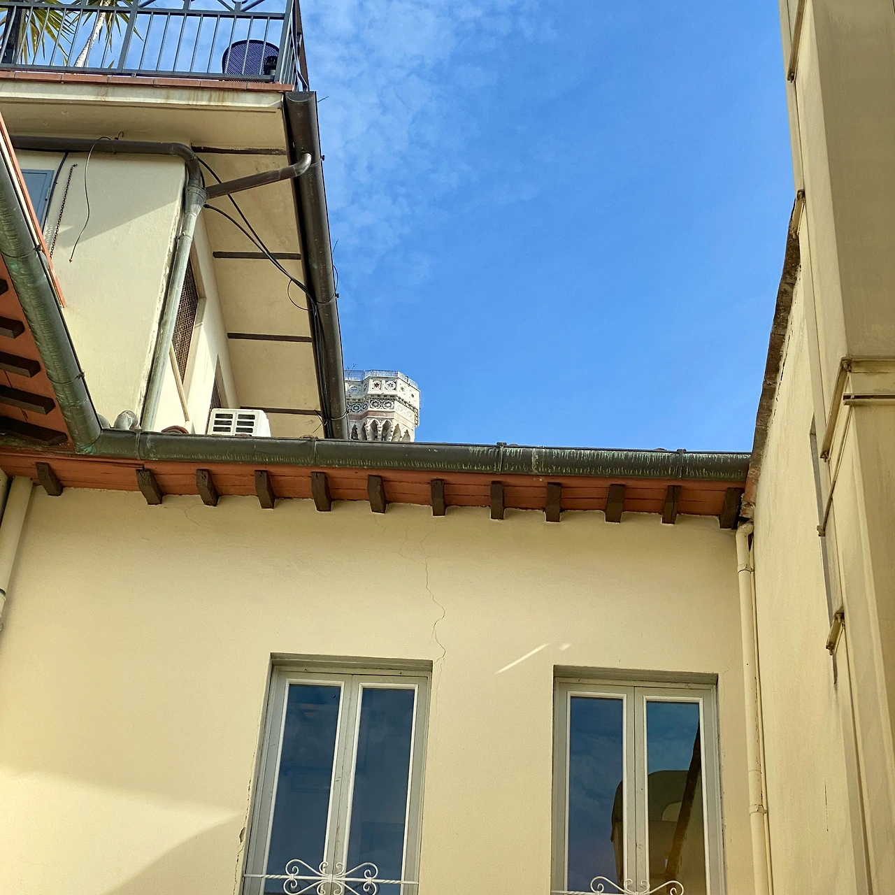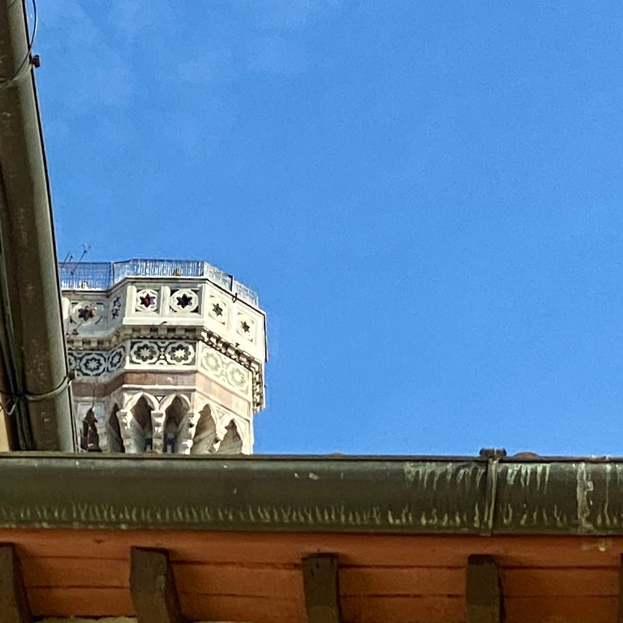 피렌체에 온 지 8일 차 아침. 오늘은 7번째 조식을 먹을 차례였지만 사회와 중년생은 과감하게 건너뛰고 침대에서 빈둥거림을 택했다. 피렌체 생활도 슬슬 막바지라 특별한 일정도 없었다. 두 사람은 암막 커튼과 엷은 흰색 속 커튼을 열고, 창문까지 열어둔 채 한 껏 여유를 부리며 누워서는 호텔 중앙 정원 위로 조그맣게 뚫린 사각형 하늘을 감상했다. 새파란 하늘 옆, 옅게 문질러진 구름 사이로 아주 조금이지만 빼꼼히 머리를 드러낸 피렌체 대성당이 보였다. 사람으로 치면 몸을 숨기려다 실수로 옷 소매가 살짝 드러나 보인 정도의 느낌이랄까.