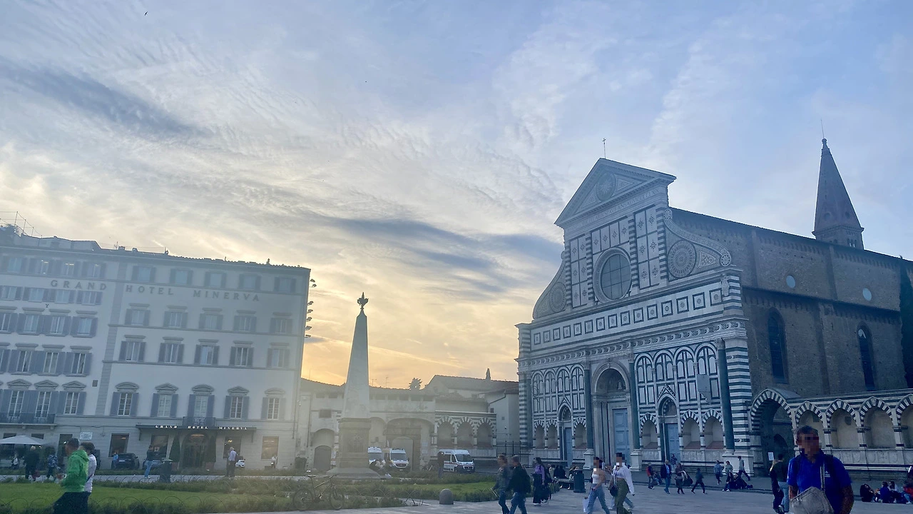 오후 7시가 되어가는 시각. 숨소리도 들릴까 말까 하게 조용한 호텔 방안 침대에는 정말 피곤했는지 여전히 두 여행객이 곤히 잠들어 있다. 살짝 열어 둔 창문에는 밖의 햇살을 가늠할 수 있을 정도로 얇게 비치는 커튼이 아주 가끔씩 하늘대고 있었다. 그리고, 아직 밝지만 기세는 다소 수그러들고 있는 7시 경의 햇살이 이 시간까지 잠들어있는 두 사람을 애잔하게 어루만지고 있었다. 기지개를 먼저 켠 것은 이번에도 사회였다. 기척이 느껴졌는지 오래지 않아 중년생도 눈을 떴다. 둘이 눈을 마주치며 말했다. “정말 잘~ 잤다!” 사실이었다. 머리끝에 덩어리처럼 머물러 있던 피곤이 여드름 짜내듯 쏘옥- 빠져나간 개운함이 느껴졌다. 꼭 필요한 잠을 잤다는 확신이 두 사람의 머릿속을 잠시 지배했다 떠나갔다. 기지개에서 스트레칭 단계로 자연스레 넘어가는 사회와 중년생. 또 슬슬 나갈 채비를 했다. 저녁이 가까워서인지 식당 메뉴판에 관심이 갔다. 그렇다고 무겁게 정찬을 즐기고 싶진 않았다. 그러다 문득 기차역 건너편 산타 마리아 노벨라 성당 앞 광장이 떠올랐다. 은근히 예쁘고 한적해서 좋았던 기억이 있어 그리로 걸었다.
