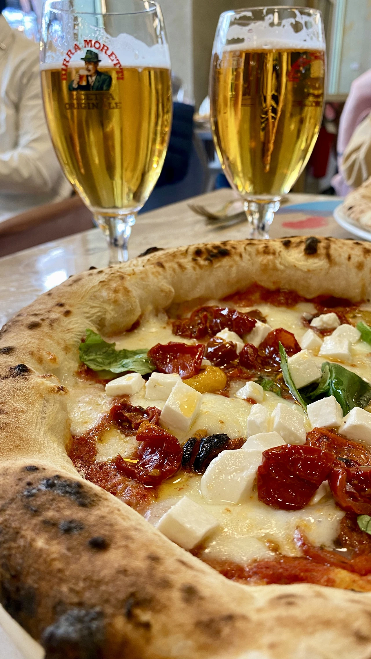 정말 가까운 곳에 피렌체 야경 투어 때 가이드가 추천해 준 피자집이 있었다. 우리에게는 영화배우로 잘 알려진 소피아 로렌의 이름을 사용한 피자가 유명한 레스토랑이었다. 실내도 소피아 로렌을 콘셉트로 너무 우아하고 아름답게 꾸며져 있는 걸 보면 이름뿐만 아니라 배우가 직접 참여한 레스토랑이 아닐까 싶었다. 우리는 가이드가 추천해 준 아솔루토 디 포모도리(Assoluto di Pomodori) 피자와 배우의 이름을 그대로 딴 소피아 로렌(Sophia Loren) 피자를 하나씩 주문했다. 생맥주로는 Moretti. 나중에 후식으로 에스프레소 한잔씩도 더했다(총 55.40유로). 지금 생각해 봐도 이 가게는 우리에겐 ‘뜻밖의 발견’이었다. 처음 피자가 나와서 한 입 베어무는 순간. 충격적이었다. 무난한 맛을 생각했던 기대치를 열 배, 아니 백 배는 넘어서는 맛이었다. 특히 아솔루토 디 포모도리 피자는 보기에는 토마토, 치즈가 넉넉하게 토핑 된 평범한 느낌이었는데 맛은 먹어본 피자 중에 거의 최고 수준이었다. ‘피자에 무슨 짓을 한 거야???’라는 생각이 절로 드는 맛이었다. 피렌체가 1호점이고 밀라노에 분점이 있다는 것으로 들었는데, 이탈리아 여행 중 발견하신다면 한번쯤 드셔 보시라고 추천하고 싶다.