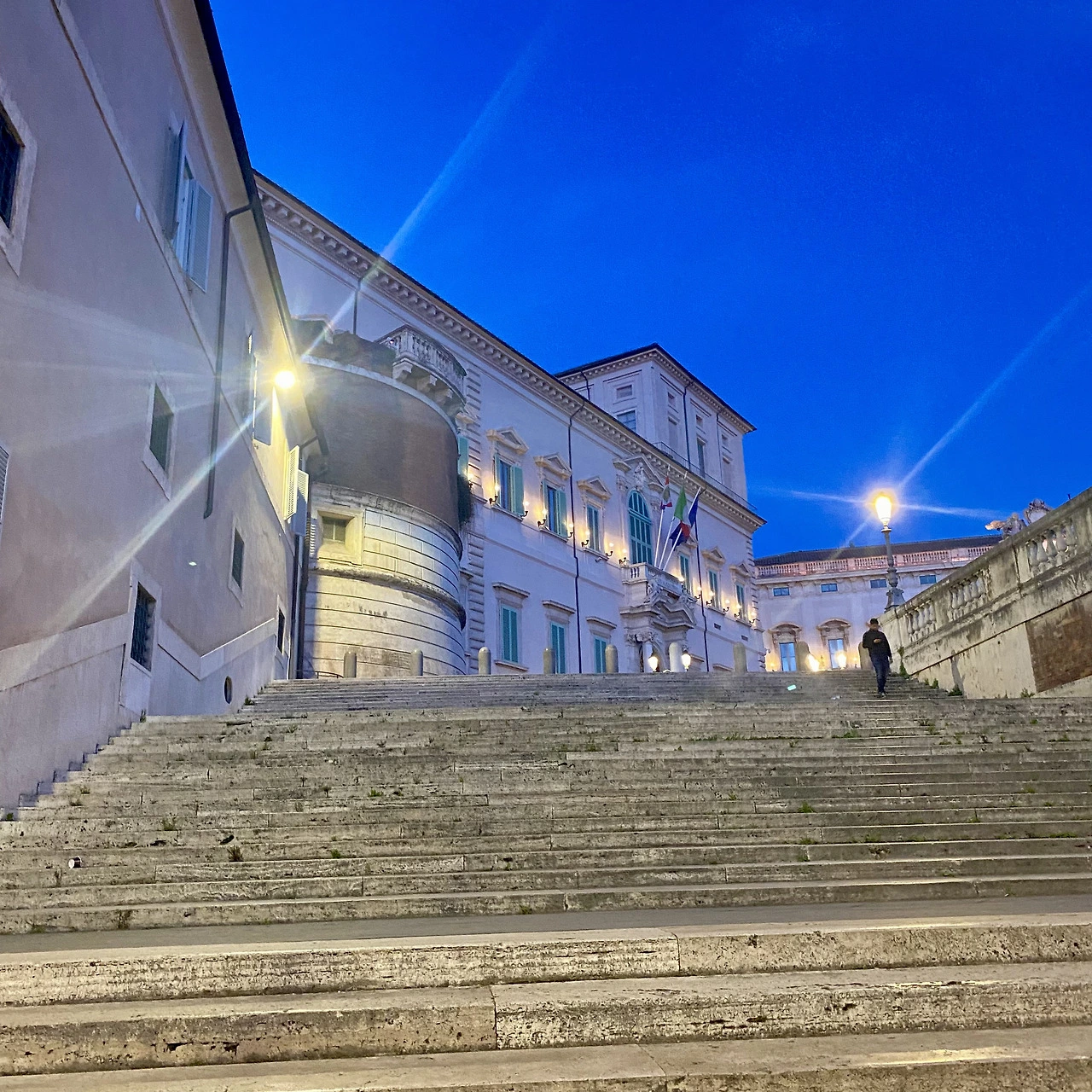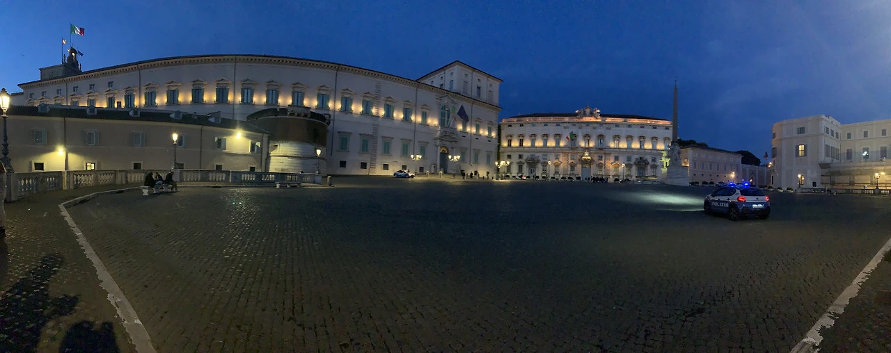 너무나 고급스러운 건물과 광장과 풍경들. 우아하다는 표현이 떠올랐다. 건물 앞에는 근위병으로 보이는 두 사람이 경계를 서고 있었다. 예사 광장은 아닐 것 같아서 꺼내든 스마트 폰의 구글 맵 찬스! 역시나 이곳은 평범한 곳이 아니었다. 다름 아닌 퀴리날레 광장(Piazza del Quirinale)과 퀴리날레 궁전. 역사적으로 교황들과 국왕들의 궁전으로 사용된 곳이며, 현재는 이탈리아 대통령의 공식 관저로 사용되는 곳이었다. 참고로 이곳은 로마의 7 언덕 가운데 가장 높은 곳이라고 한다. 그럼 그렇지. 이곳의 고요하고 벅찼던 일몰의 경치는 오랫동안 가슴속에 남을 거란 확신이 들었다.