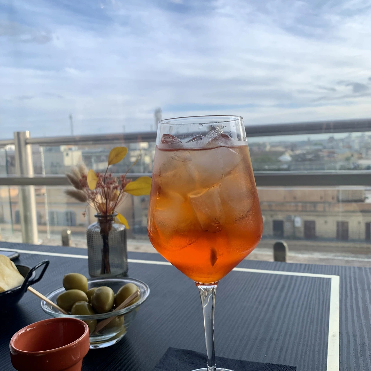 아직 뜨거운 태양, 탁 트인 비현실적인 로마의 전경, 다소 출출한 위장의 삼박자가 절묘하게 어우러진 두 사람은 올리브 한 입, 스프리츠 한 모금, 감자칩과 땅콩 한 입의 무한 루프 시스템에 흔쾌히 몸을 던졌다. 그러다 보니 금세 한 잔이 동이 났다. “한 잔 더?” 사회가 신호를 보냈고, 중년생은 대답 없이 바로 직원을 불러 주문을 했다. 여유롭고 여유롭고 여유롭고 또, 여유로운 로마의 오후였다.