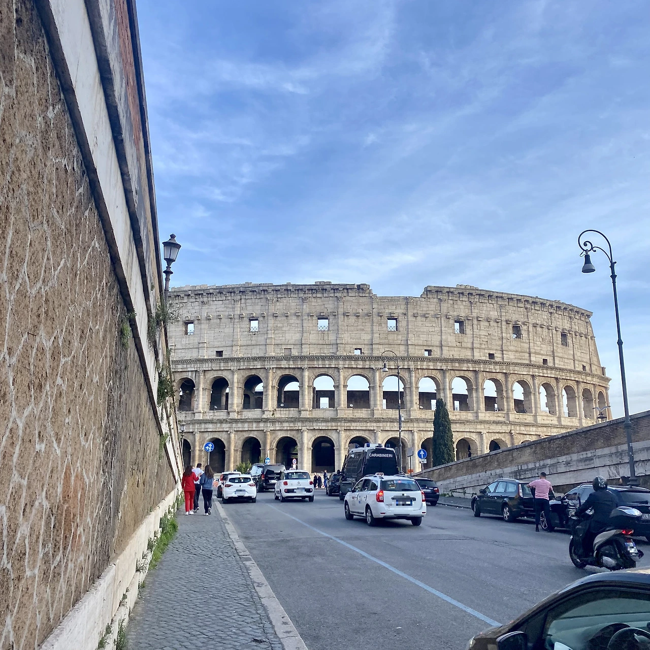 식사를 마치고 다시 빠르게 호텔 방으로 돌아온 두 사람. 이제 저녁 산책 전까지 휴식을 취할 차례였다. 누가 먼저랄 것도 없이 스마트폰을 충전기에 꽂은 것처럼 침대에 누워 꼼짝 않고 낮잠을 시작했다. 1시간 경과, 2시간, 3시간... 충전 완료! 일어나 보니 6시가 넘어 있었다. 천천히 남은 잠기운을 날려 보내고, 나갈 준비를 하고는 주머니에 양손을 넣은 채로 바지를 흔들어대며 여유롭게 밖으로 나왔다. 밝지만 다소 누그러진 햇살이 우리의 산책을 반겨주는 기분이었다. 이제 콜로세움까지는 제법 익숙해서 지도 없이도 발걸음이 거침없었다. 다시 봐도 가슴을 쿵쾅거리게 만드는 나의 연예인, 콜로세움의 웅장함을 정면으로 마주하며 우리는 콜로세오 지하철 역을 기준으로 왼쪽으로 걸었다. 임페리알리 거리는 오른쪽으로 뻗어 있었는데, 해가 질 무렵에 보고 싶어서 먼저 반대편으로 크게 한 바퀴 돌아보기로 했던 것이다. 콜로세움에서 탁 트인 대전차 경기장 터를 거쳐, 영화 로마의 휴일에도 등장하는 유명한 진실의 입에 당도했다. 관람시간이 지나 내려진 철문 사이로 실물을 보는데 만족해야 했지만 사실, 사회와 중년생 둘 다 입에 손을 직접 넣고 사진을 찍거나 하는 데에는 관심이 없는 스타일이기 때문에 상관없었다. 그것보다 웨딩 케이크(비토리오 엠마누엘레 2세 기념관) 쪽으로 걷는 길 위로 서 있는 유적들(찾아보지 않아도 유적이란 걸 알 수 있을 정도의 포스가 풀풀 풍긴다)의 모습을 카메라에 담기에 더 바빴다.