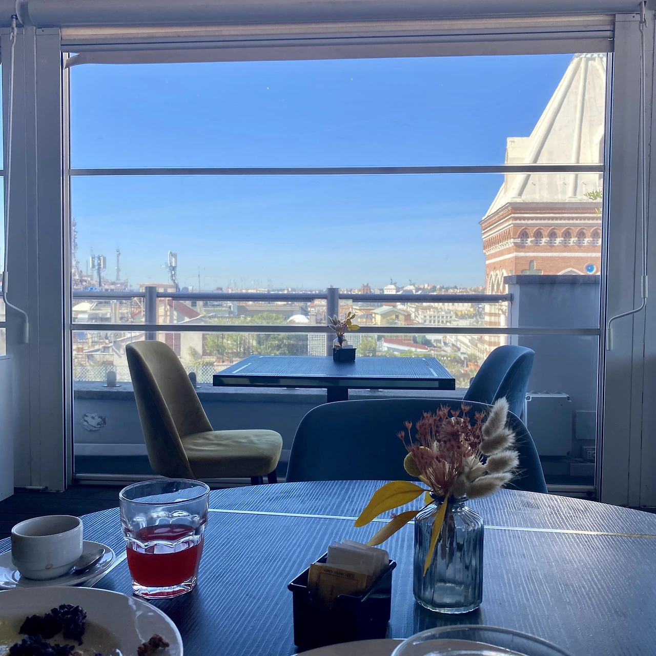 기지개를 늦게 켰으니 루프탑에 올라가는 시간도 자연히 뒤로 밀렸다. 조식이 거의 끝나가는 시간이라 예상대로 사람들이 없어 한산했다. 오늘도 새파란 하늘과 상쾌한 공기가 우리의 남은 잠을 기분 좋게 깨워주었다. 간소하게 조식을 먹고 씻기 위해 방으로 돌아온 두 사람은 외출 전에 오늘의 계획을 간단하게 정리해 봤다.
