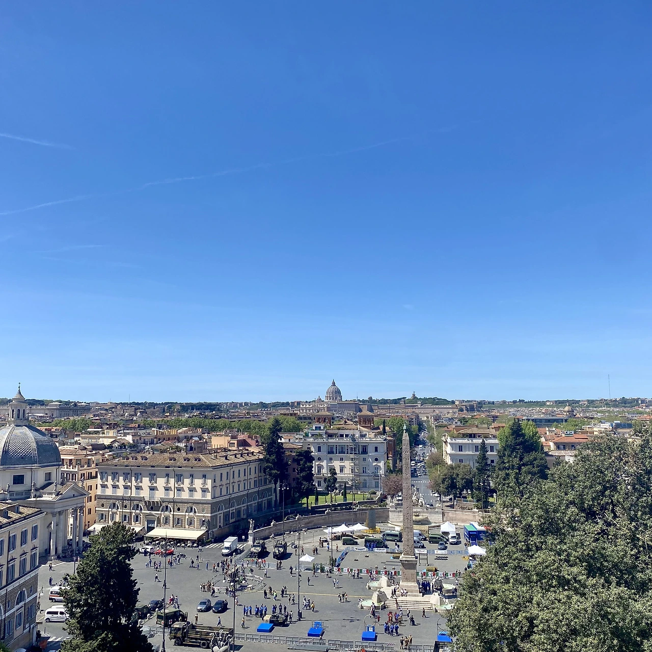 (이미 몇 번이나 언급했지만) 사회와 중년생이 가장 좋아하는 길은 다름 아닌 임페리알리 거리(Via dei fori imperiali)였다. 웅장한 콜로세움부터 새하얀 웨딩 케이크(비토리오 엠마누엘레 2세 기념관의 별칭)까지 이어지는 탁 트인 길. 양 옆으로 포로 로마노의 풍경이 한눈에 펼쳐지는 비현실적인 거리였다. 4월 초에 로마에서 베네치아로 떠나던 날, 로마에 돌아오면 꼭 다시 걷자고 약속했었고 실제로 며칠 전 다시 오자마자 가볍게 걷기도 했다. “근데 거기는 저녁에 해 질 때 가야 좋지 않을까?” 탁 트인 탓에 대낮엔 해를 피할 곳이 없다는 사실이 생각났는지 사회가 타당한 의견을 제시했다. “그럼 안 가본 코스로 산책 갔다 와서 점심 먹고 쉬다가 거긴 저녁에 가자!” 잠시 생각에 잠겼던 중년생이 새 의견을 제시했다. 중년생이 말한 ‘안 가본 코스’란 포폴로 광장 쪽으로 가서 핀초 언덕에 올라 잠시 전망을 즐기고, 보르게세 공원을 가로질러 다시 호텔로 돌아오는 코스였다.