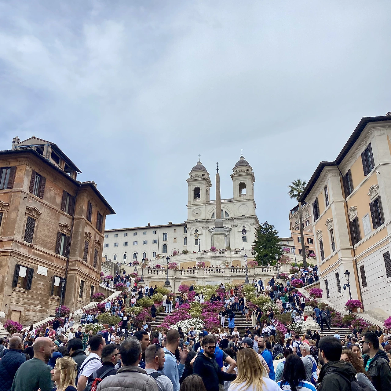 모처럼 심각한(?) 주제로 머리를 혹사하며 당도한 스페인 계단은 여전히 매력적인 모습으로 우리를 맞이해 주었다. 꽃이 가득한, 탁 트인 광장의 모습(비록 이곳도 관광객들로 가득하긴 했지만 그것은 불가항력)을 보자마자 무거워졌던 머리가 정화되는 기분이 들었다. 호기심에 계단 맞은편 골목으로 들어서니 카페 그레코(Antico Caffe Greco)가 나타났다. 평소 커피를 좋아하는 두 사람인지라 당연히 1760년부터 시작된 역사를 경험해보고 싶었으나, 역시나 사람이 너무 많아서 포기하기로 했다. 가뜩이나 사람 많은 관광지인데 토요일까지 겹치니 현재의 체력으로는 기다릴 엄두가 나지 않았다. 그리고 베네치아의 카페 플로리안, 피렌체의 카페 질리와 같은 오랜 역사의 카페를 경험해 본 터라 이제는 그쪽으로는 크게 궁금하지 않기도 했다.