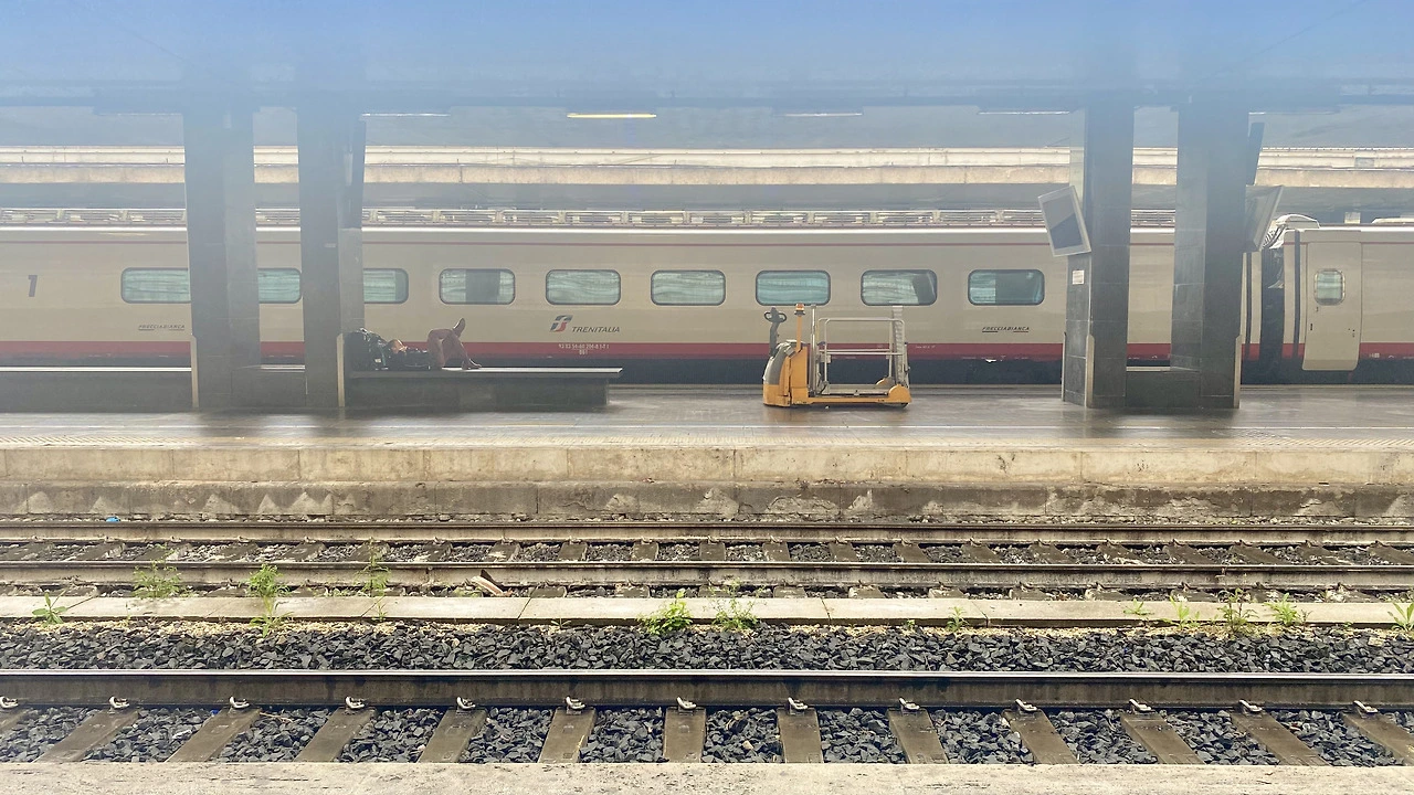 캐리어를 찾아 테르미니 역에 도착했을 때는 4시 20분경이었다. 출발 시각이 밤 9시 25분이고, 탑승 시간도 8시 45분인 비행기라서 시간은 지나치게 충분했지만, 만약의 사태를 항상 염려하는 쫄보인 중년생이기에 일찍 가는 것이 마음 편해서였다. 도착한 플랫폼의 건너편에는 이런 중년생과는 완전 반대 성격(?)으로 추측할 수 있는 여행자 한 명이 열차를 기다리고 있었다. 가방을 베개 삼아, 본인 집 안방마냥 다리를 꼰 채 정말 편한 자세로 누워있는 모습만 봐도 예상이 되는 느긋한 성격의 여행자였다.