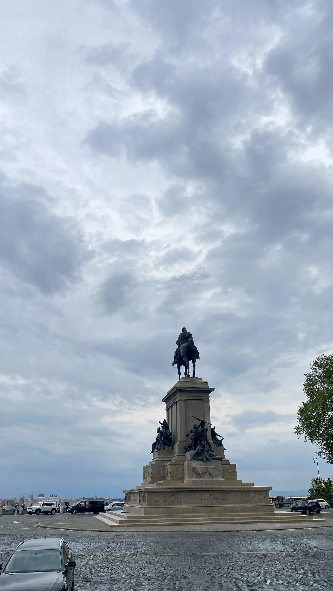 한적하고 탁 트인 광장의 복판에는 말을 타고 있는 사람의 동상이 서 있었다. 그것은 다름 아닌, 이탈리아의 통일부터 왕국 성립에 지대한 공헌을 한 주세페 가리발디 장군(Giuseppe Maria Garibaldi)의 동상이었다. 로마 7대 언덕에는 속하지 않지만 상당히 유명한 언덕인 자니콜로. 맑은 날은 아니었지만 나무들 너머로 시내의 전경이 안정감 있게 시야에 들어왔다. 난간에도 앉기 편하게 되어있어 연인들이 많이 찾을 것 같다는 생각이 들었다. 하늘은 이따금씩 부슬비를 뿌리다가 멈췄다가를 반복하고 있었다. 순간, 화초를 살피면서 분무기의 손잡이를 쥐었다 폈다 하는 동네 꽃집 사장님의 모습이 떠올랐다가 사라졌다. 슬슬 호텔로 짐을 찾으러 돌아갈 시간이었다.