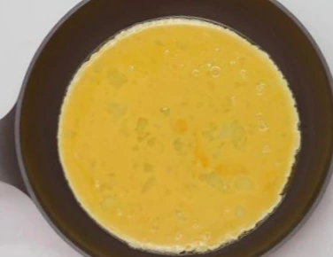 계란을 풀어서 타지 않게 약불로 익혀낸 것이 도우가 되는 것이다.