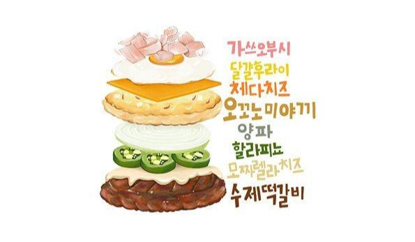 한국인이 좋아하는 매운맛에 여성분들의 취향에 맞춘 치즈들, 달짝지근한 떡갈비 같이 환상의 조합이라는 단짠단짠. 누구라도 좋아할 법한 오코노미야키를 볼 수 있다.