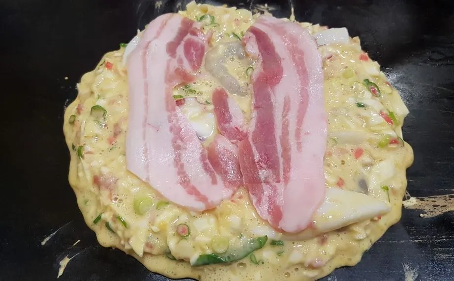 다만 한국의 전처럼 얇게 하는 것과는 달리 팬케이크처럼 두껍게 유지하여 지져먹는 게 특징을 가진 게 오코노미야끼다.
