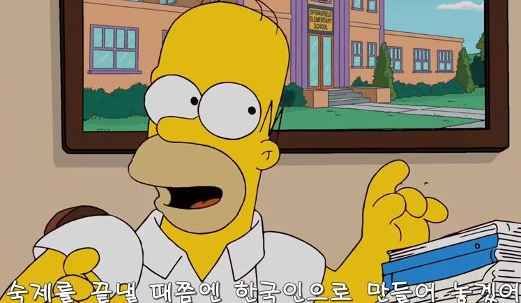 "그럼 숙제를 더 내요." 그러면서 바트의 아빠는 숙제를 더 올리면서 마지막 말을 덧붙였다. "숙제를 끝낼 쯤엔 한국인으로 만들어 버리겠어."