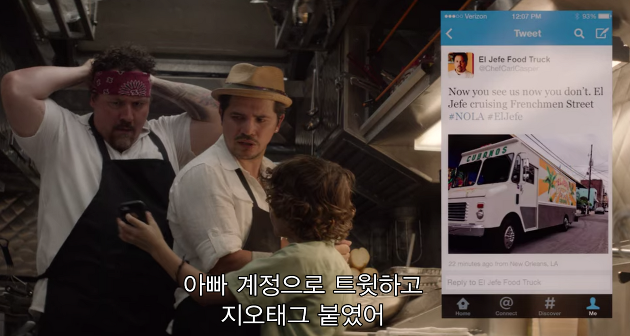 칼의 음식 솜씨는 정말 일품입니다. 그건 레스토랑에서 뿐만이 아니라 낡은 푸드트럭에서도 거침없이 뽐내죠. 그리고 그런 푸드트럭의 존재를 알리는 건 '소통'을 잘할 줄 아는 아들 퍼시의 솜씨였죠. 퍼시는 트위터 SNS를 통해서 아메리카의 손님들을 끌어 모읍니다.