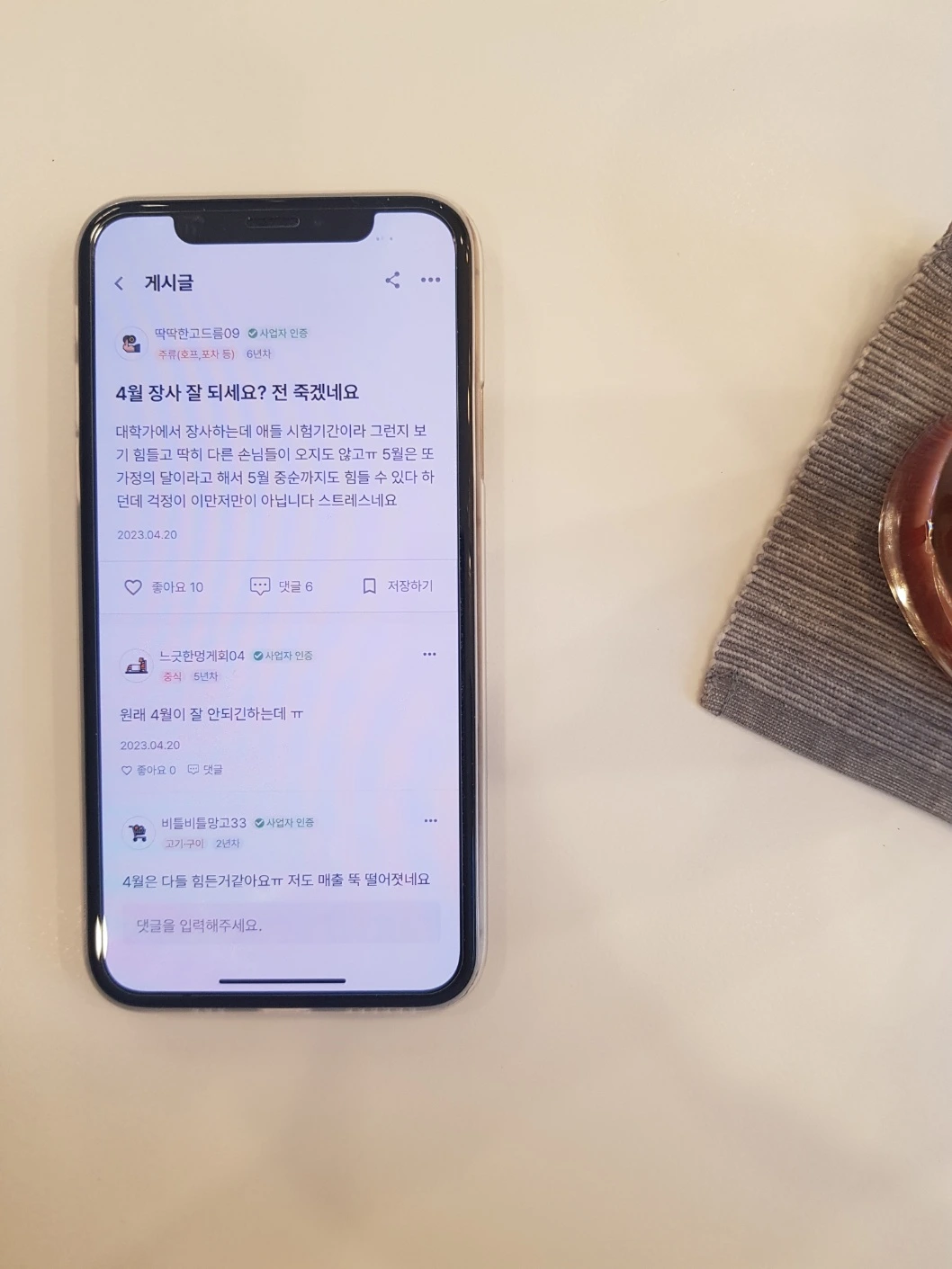 나의 고민은 아주 쉽게 풀어주어서인지 커뮤니티앱을 ‘장사인’을 계속 살펴보았다. 오히려 너무 쉽게 해결이 되어서 믿음이 가지 않는 기분이었다. 하지만 마냥 그럴 수도 없는게 이 앱은 사업자번호를 등록하고 활동하고 있는 유저들이 많은 비중을 가지고 있었다.