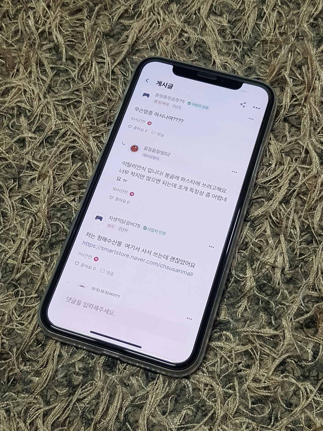 [저는 청해수산몰 여기서 사서 쓰고 있는게 괜찮았어요.] 라는 말과 함께 바로 접속 할 수 있도록 업체의 링크까지 첨부해주고 있었다.