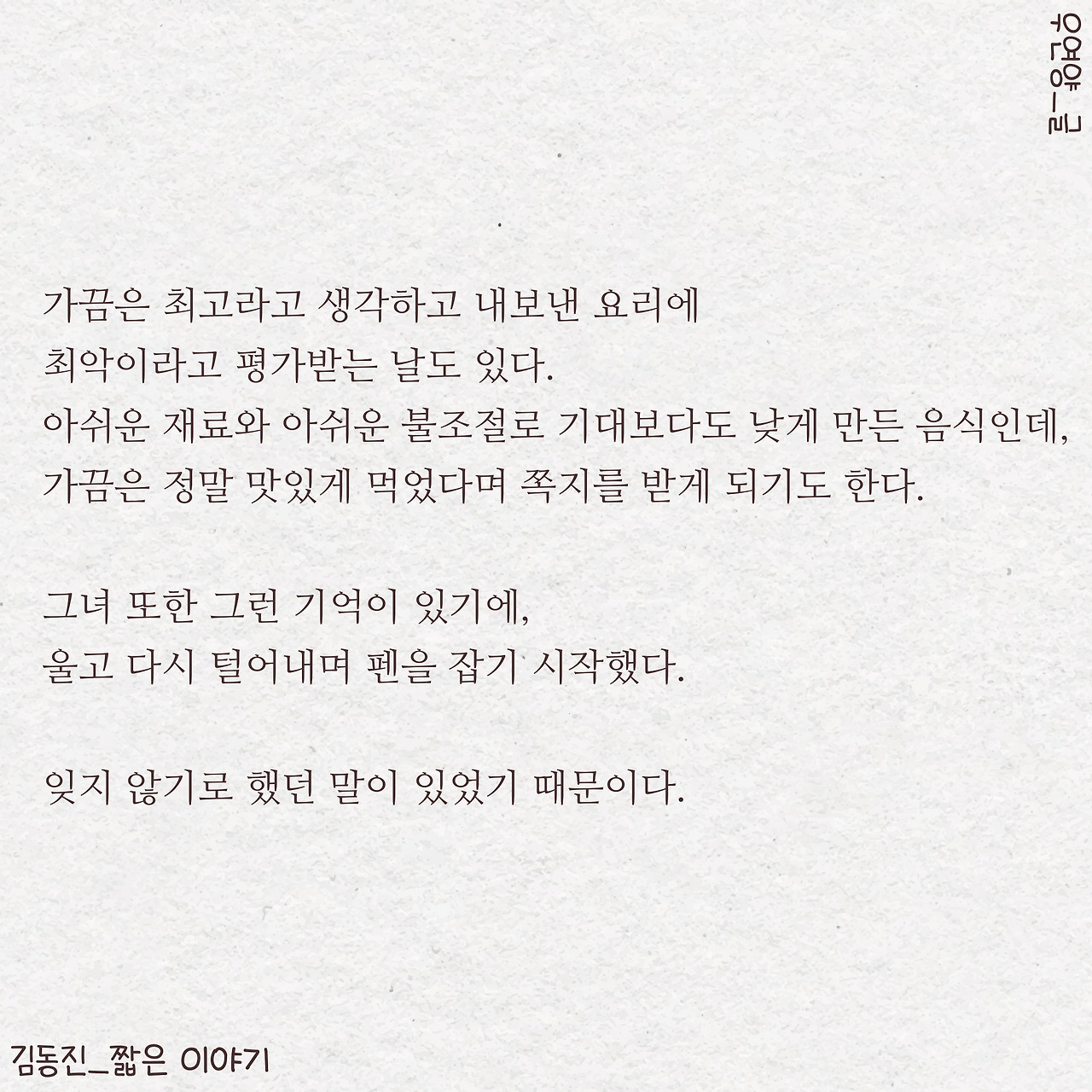 우리는 가끔, 잘했던 것보다 못했던 것에 상처받아 더 기억에 남기고 아파하기도 합니다.