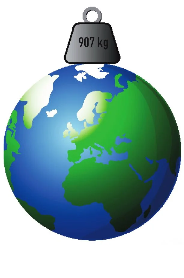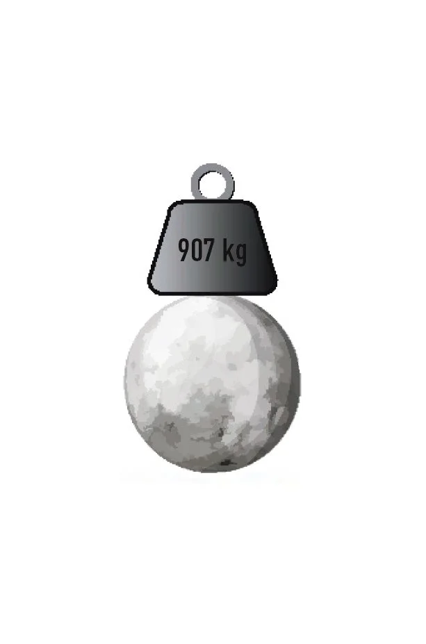 지구에서 907kg(2,000lb)의 질량은 8,900N(뉴턴)의 무게를 갖는데, 지구의 중력이 9.81N/kg(4.45N/lb)이기 때문이다.