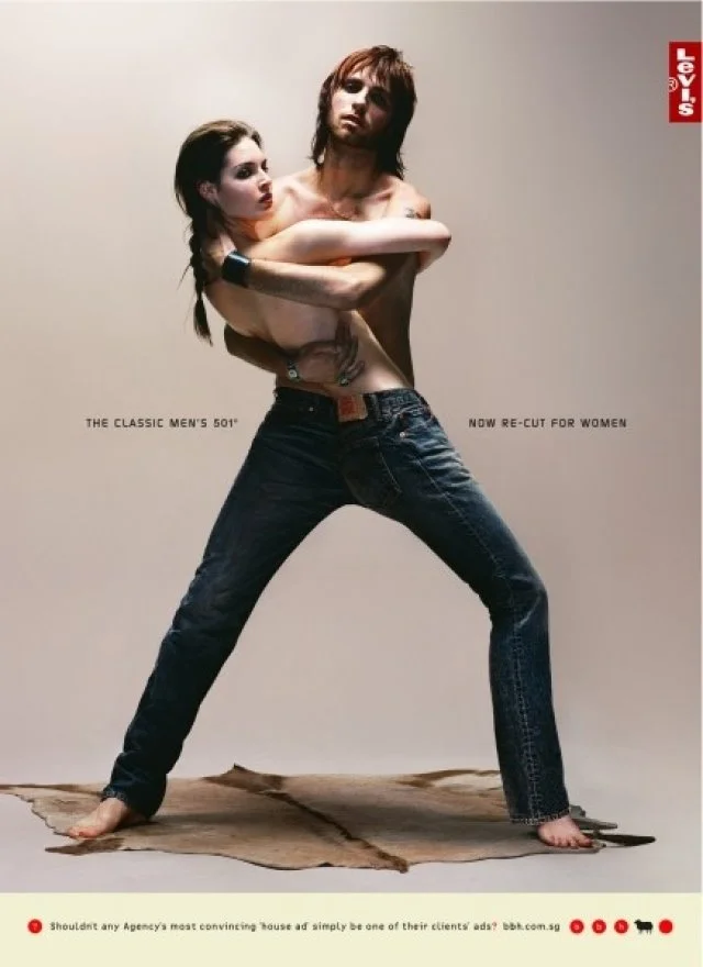 리바이스 광고. 고정관념에 빠져 있다면 이런 아이디어를 낼 수 있을까? 고정관념은 아이디어의 적이다. 안 된다고 생각하면 되는 것이 없다. 된다고 생각하면 늘 길이 보인다.