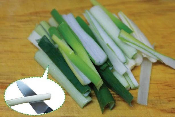 3. 다듬은 대파를 반으로 가른 뒤 3~4cm 길이로 썰고 4등분 해 주세요.